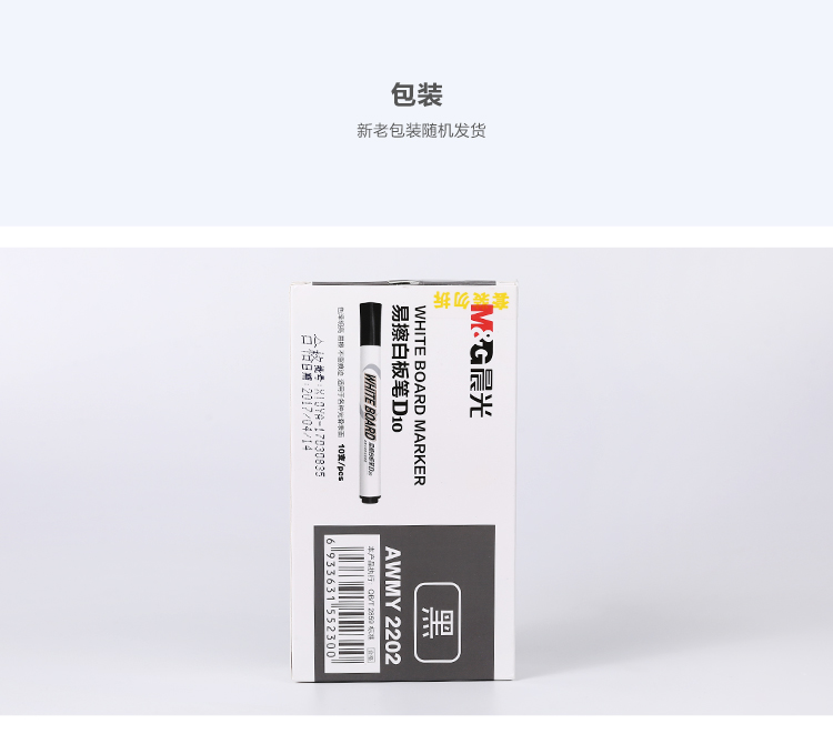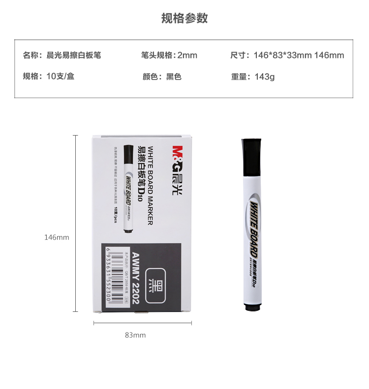 - 商品名称:晨光(M&G)文具黑色可擦白板笔 单头办公会议笔 易擦记号笔 10支/盒AWMY2202