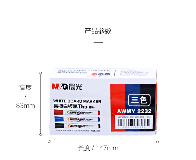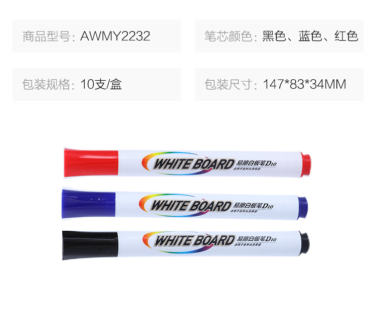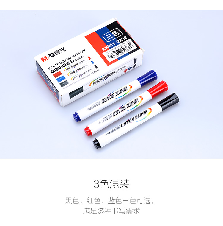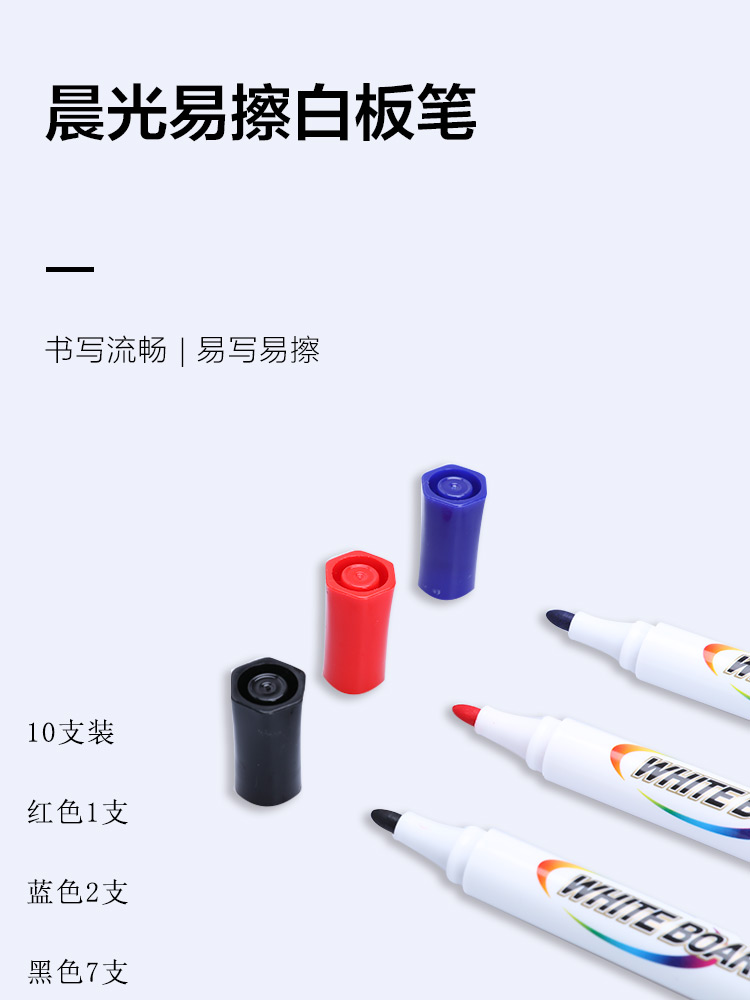 - 商品名称:晨光(M&G)文具可擦白板笔套装 单头易擦办公会议笔(7黑+2蓝+1红) 10支/盒AWMY2232