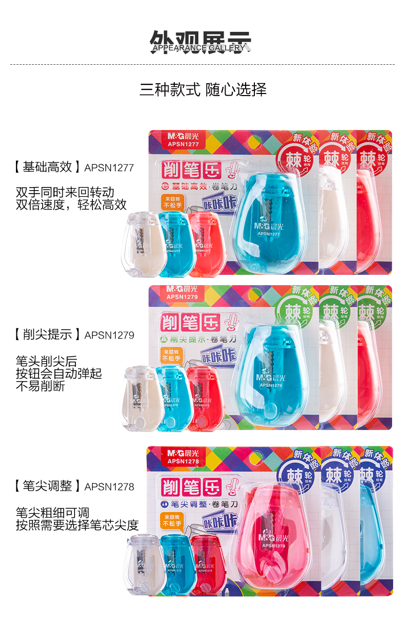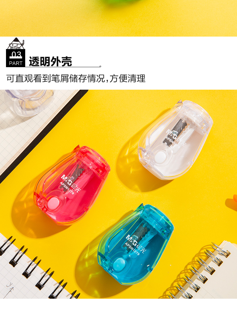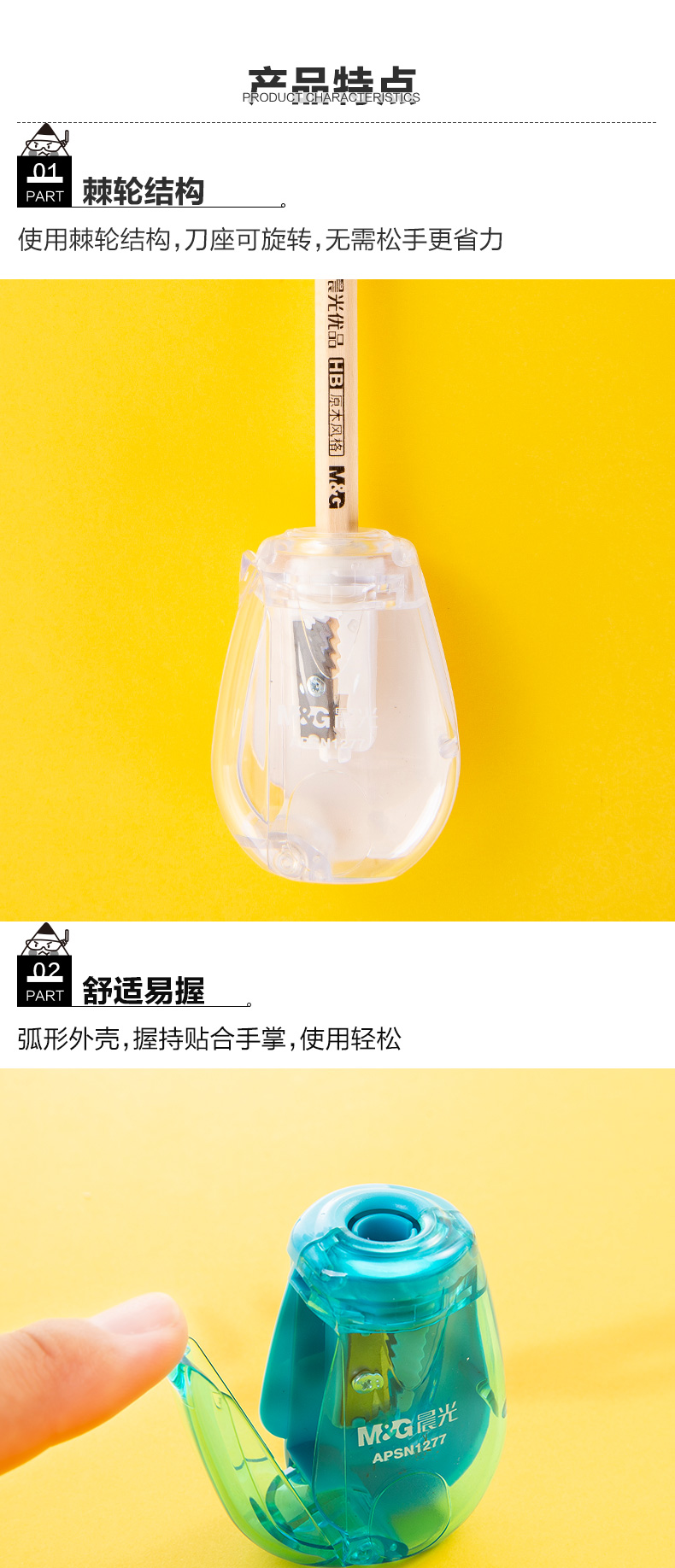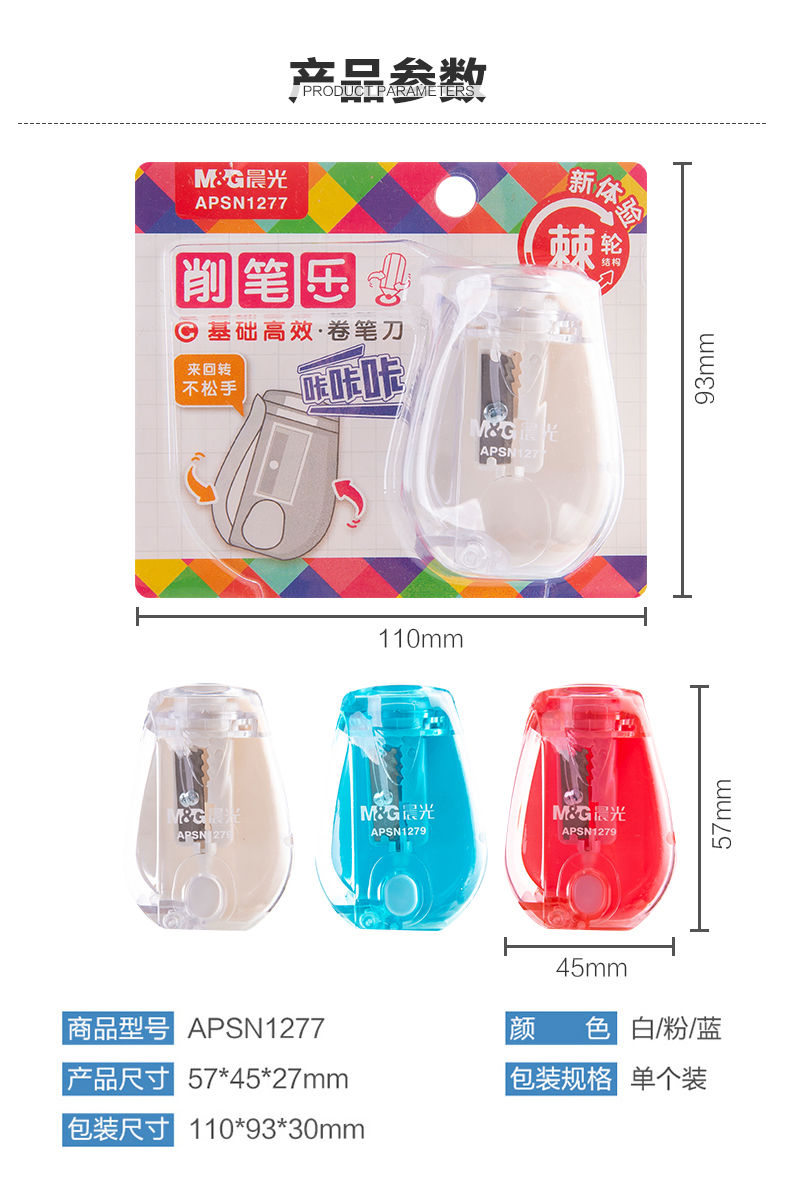 - 商品名称:晨光(M&G)文具学生手动卷笔刀 铅笔削笔器 基础高效双倍速度转笔刀 单个装颜色随机APSN1277