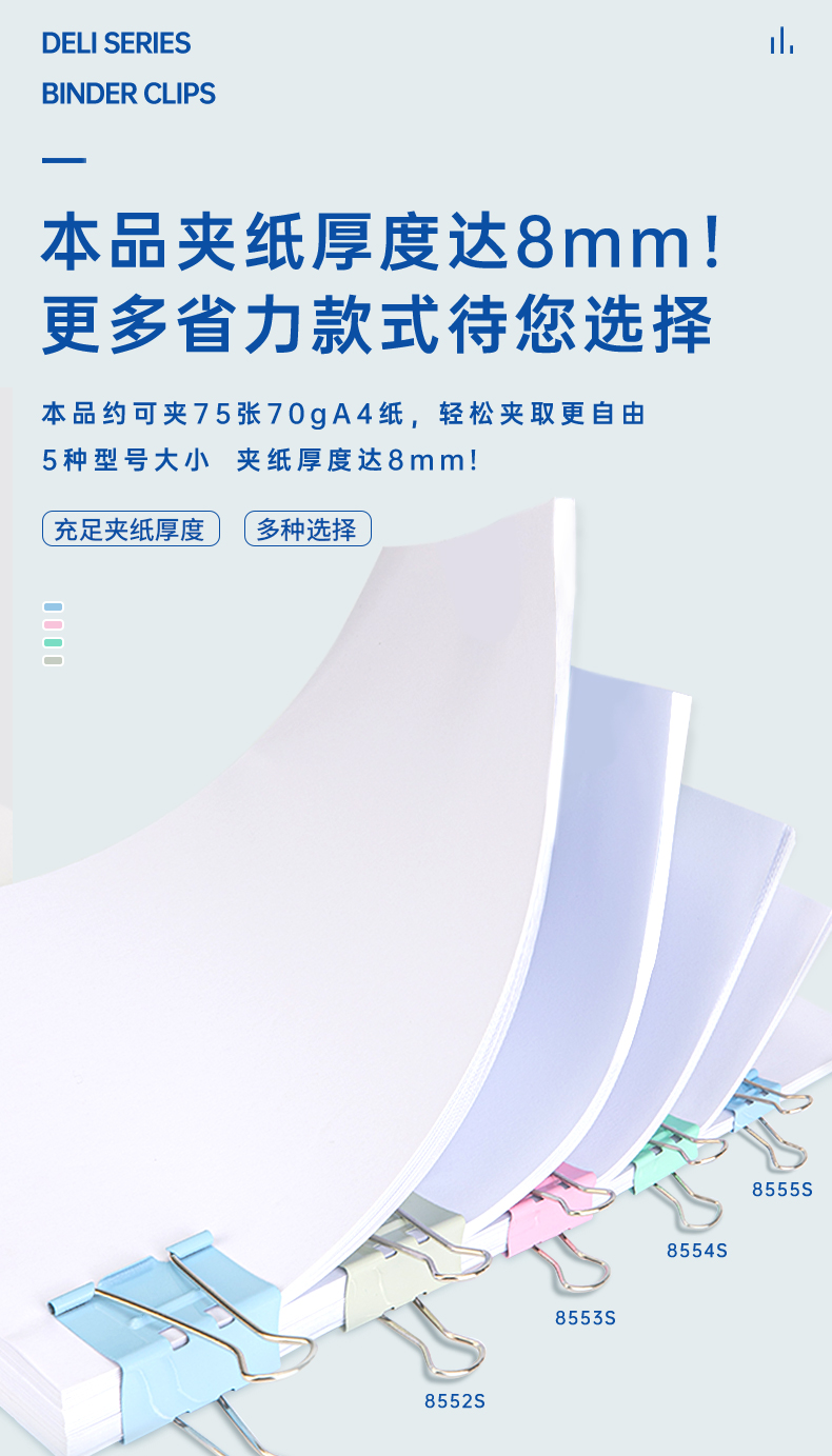 - 商品名称:得力(deli)48只25mm省力彩色长尾夹票夹 4#金属燕尾夹票据夹子 办公用品 8554S