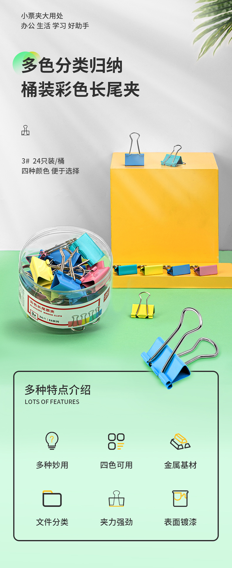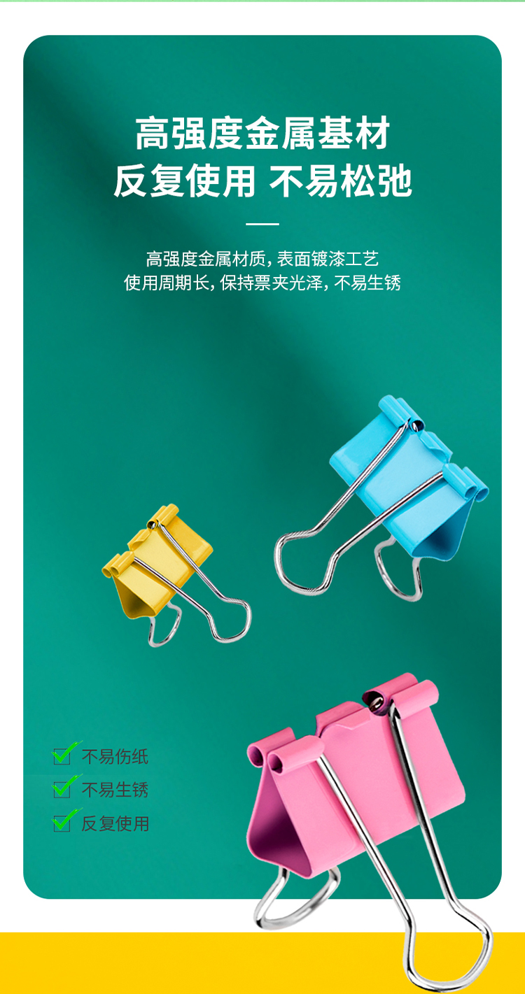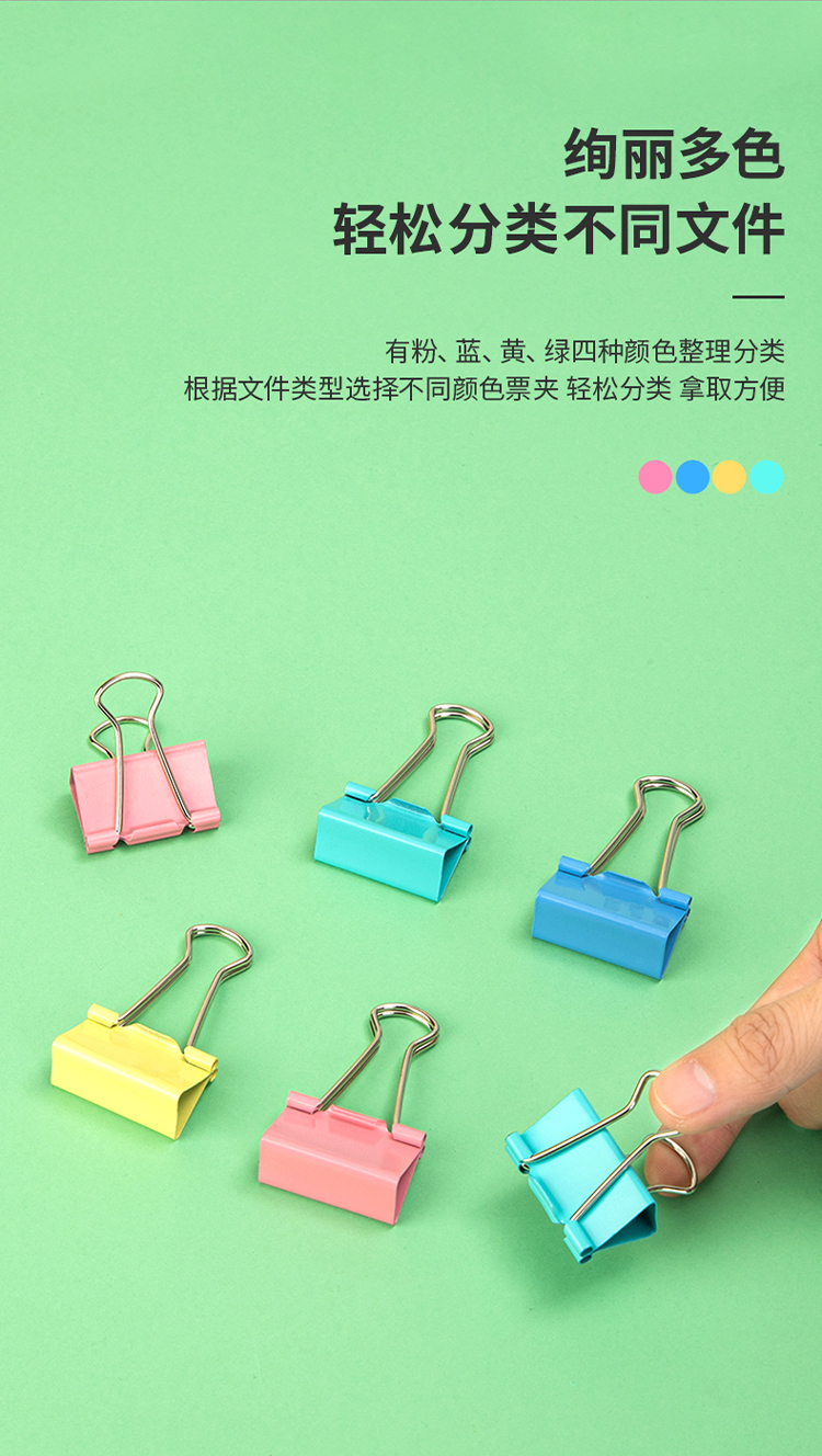 商品名称:得力(deli)24只32mm彩色长尾夹票夹 3#金属燕尾夹票据夹子 办公用品 8553ES