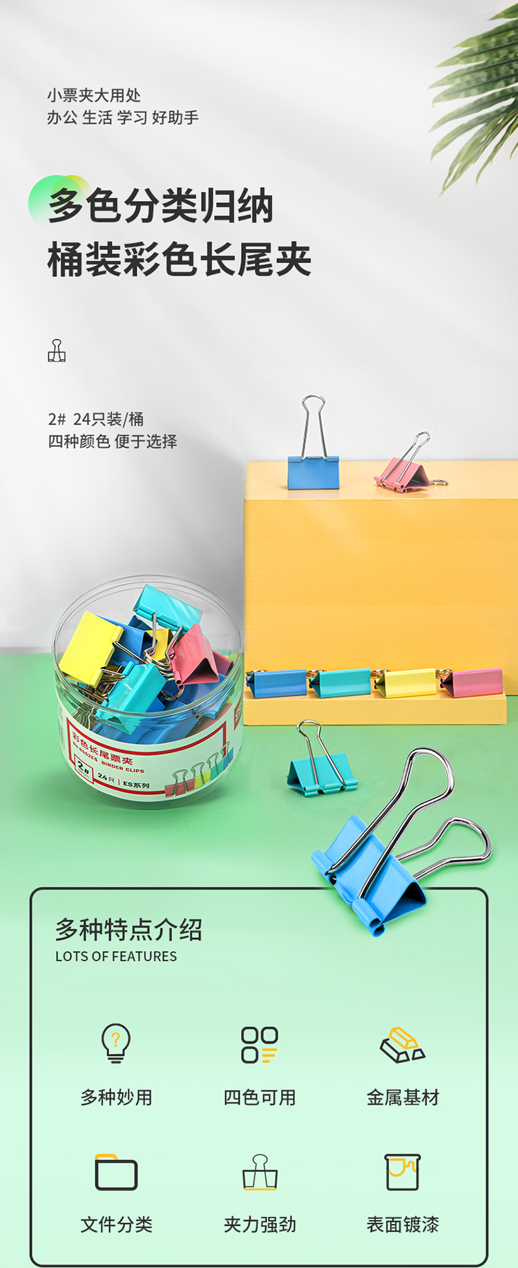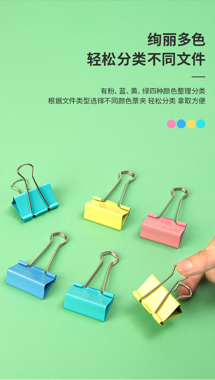 - 商品名称:得力(deli)24只41mm彩色长尾夹票夹 2#金属燕尾夹票据夹子 办公用品 8552ES