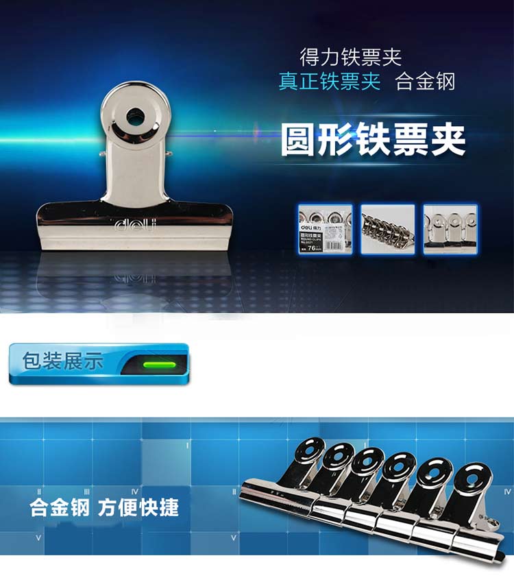 - 商品名称:得力(deli)6只76mm圆形铁票夹资料整理夹票据夹9521