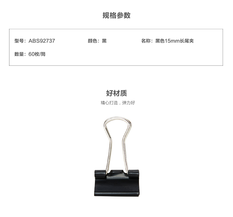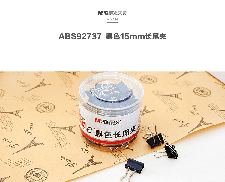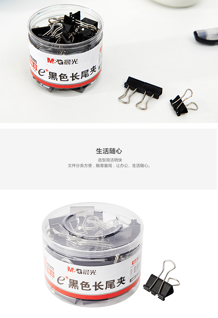 - 商品名称:晨光(M&G)文具15mm黑色长尾夹 金属票据夹 Eplus系列办公燕尾夹 60只/罐ABS92737
