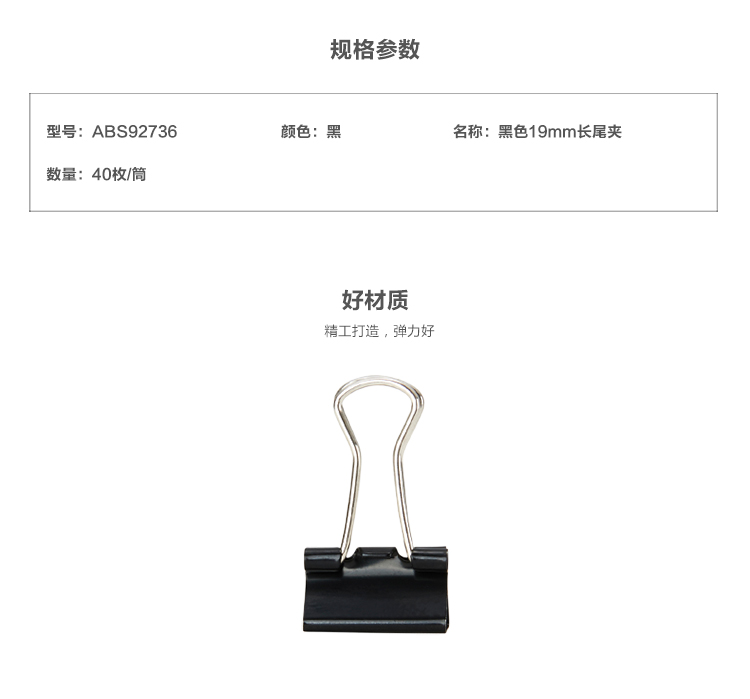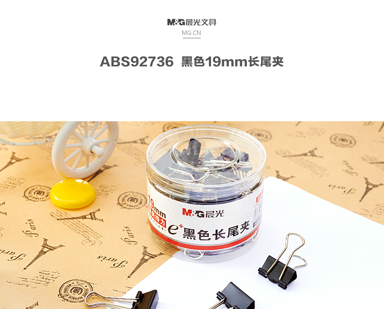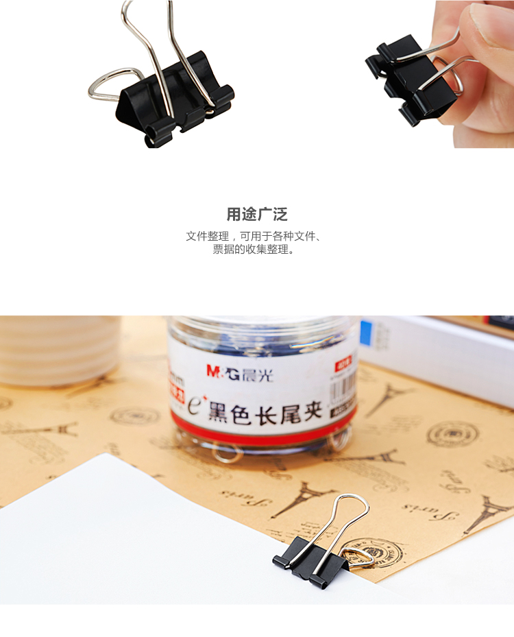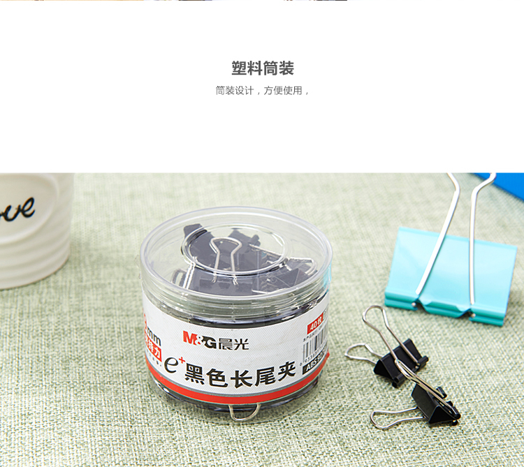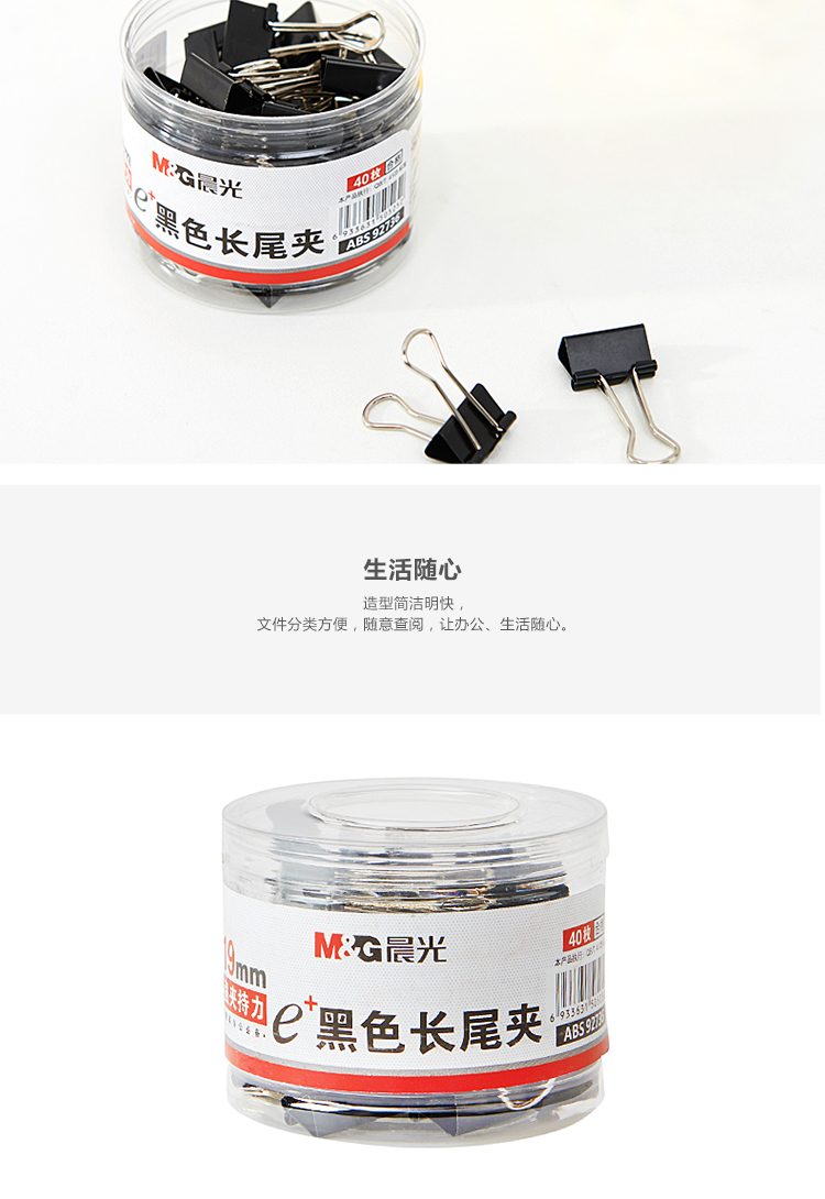 - 商品名称:晨光(M&G)文具19mm黑色长尾夹 金属票据夹 Eplus系列办公燕尾夹 40只/罐ABS92736