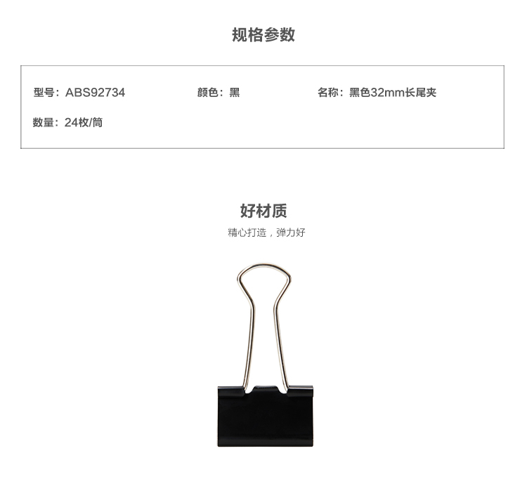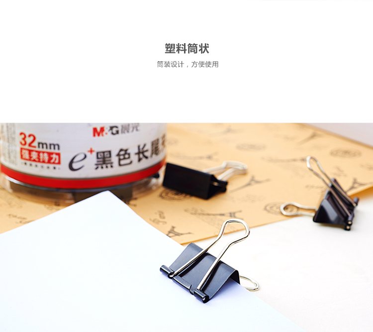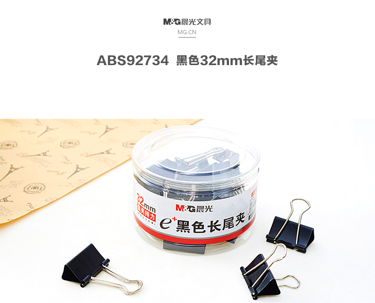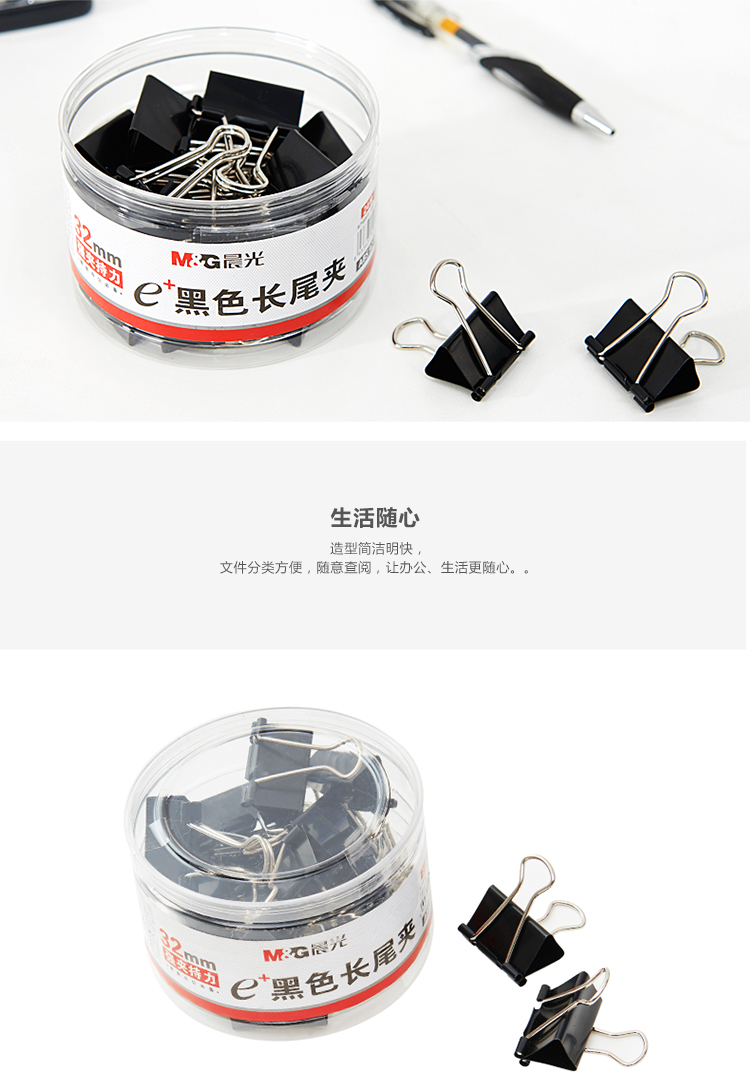 - 商品名称:晨光(M&G)文具32mm黑色长尾夹 金属票据夹 Eplus系列办公燕尾夹 24只/罐ABS92734
