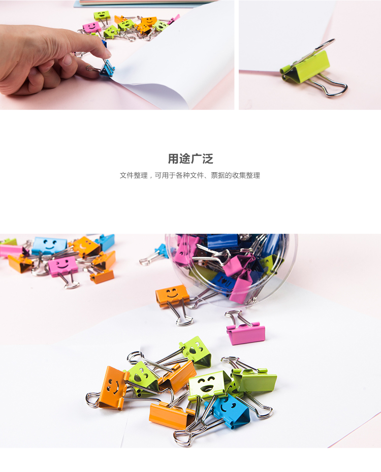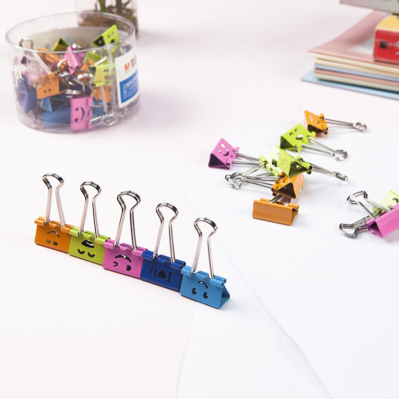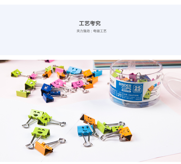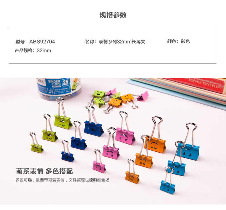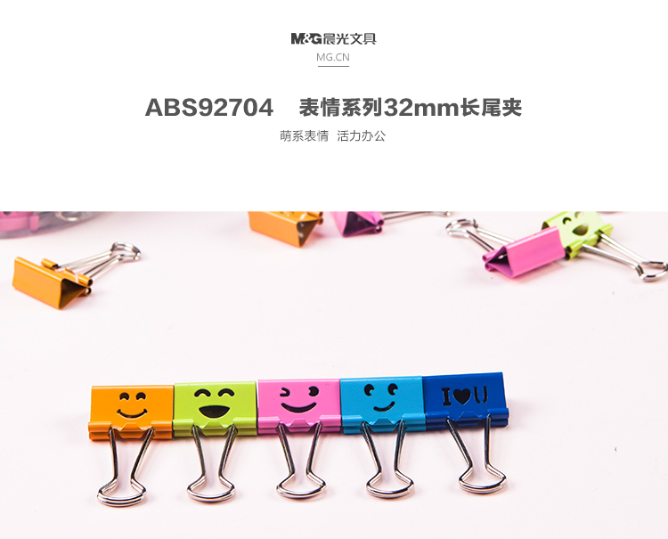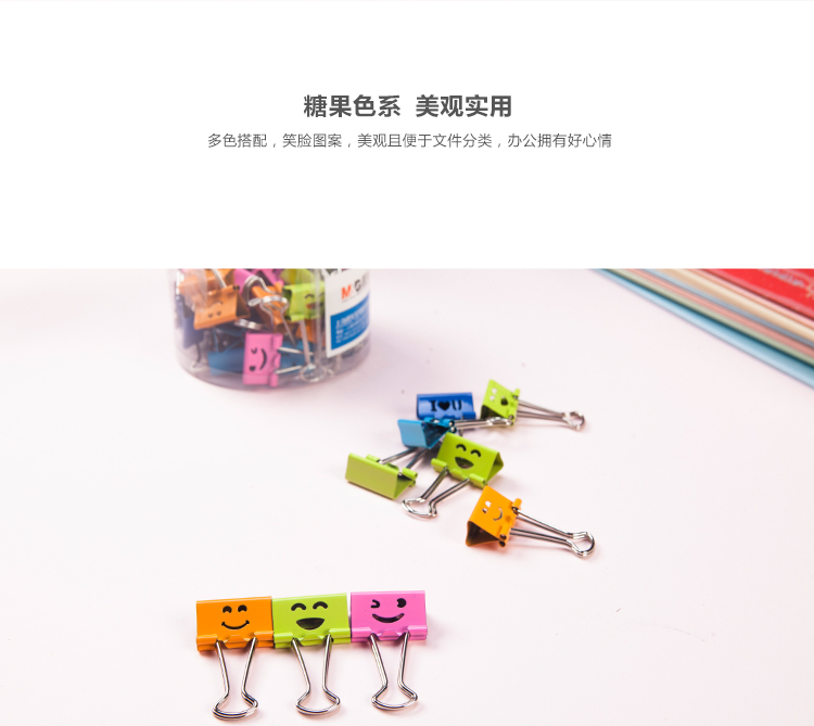 - 商品名称:晨光(M&G)文具32mm彩色可爱笑脸长尾夹 金属票据夹 办公用品燕尾夹 24个装ABS92704