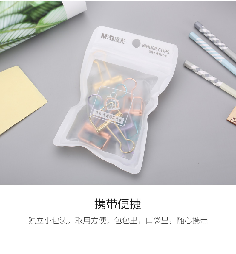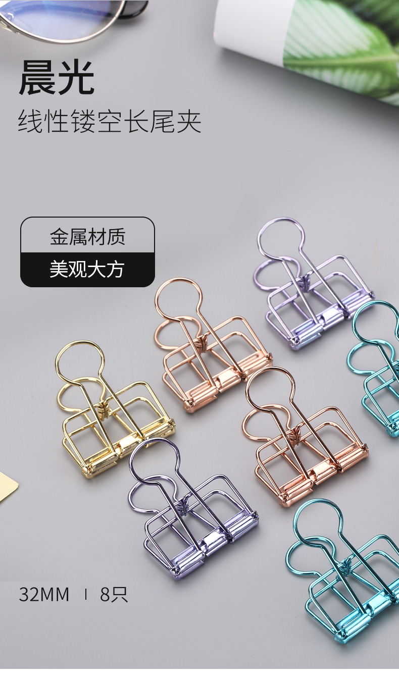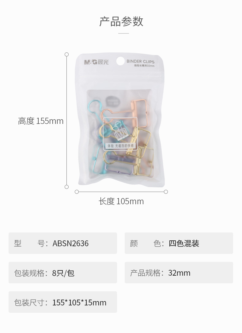 - 商品名称:晨光(M&G)文具32mm四色混装线性长尾夹 金属票据夹 办公用品燕尾夹 8个/包ABSN2636