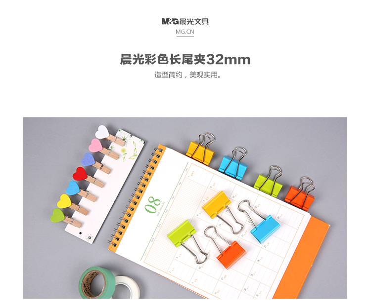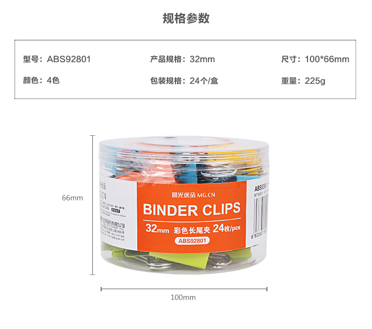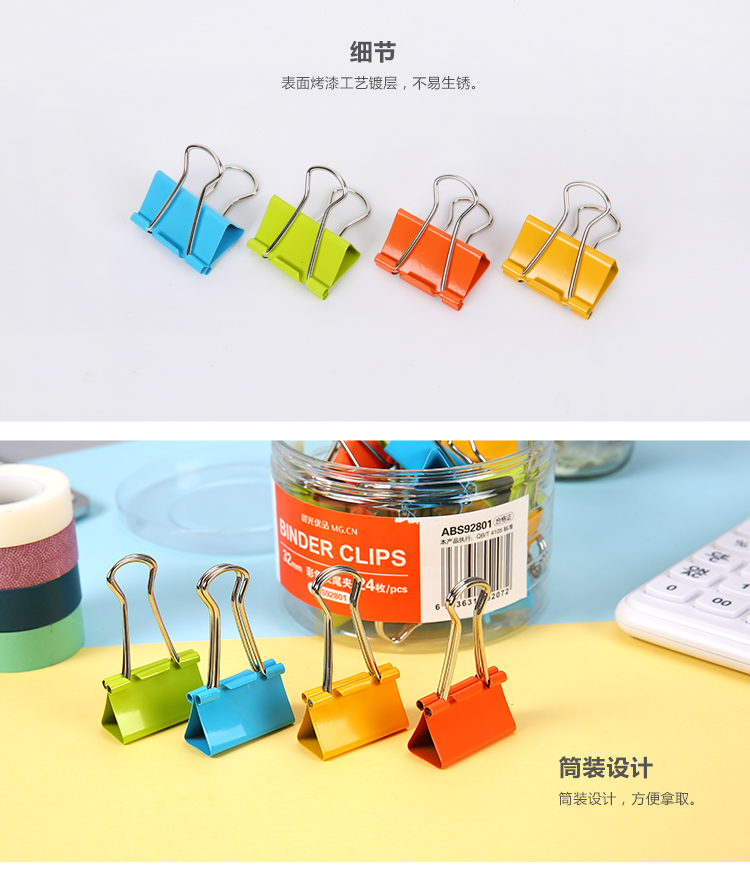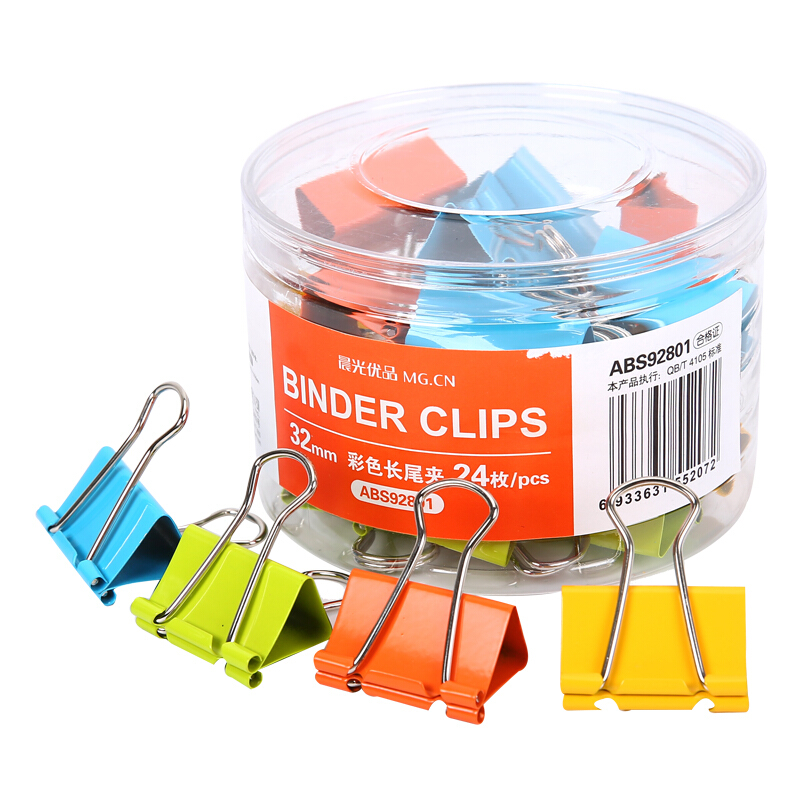 - 商品名称:晨光(M&G)文具32mm彩色长尾夹 金属票据夹 办公用品燕尾夹 24个装ABS92801