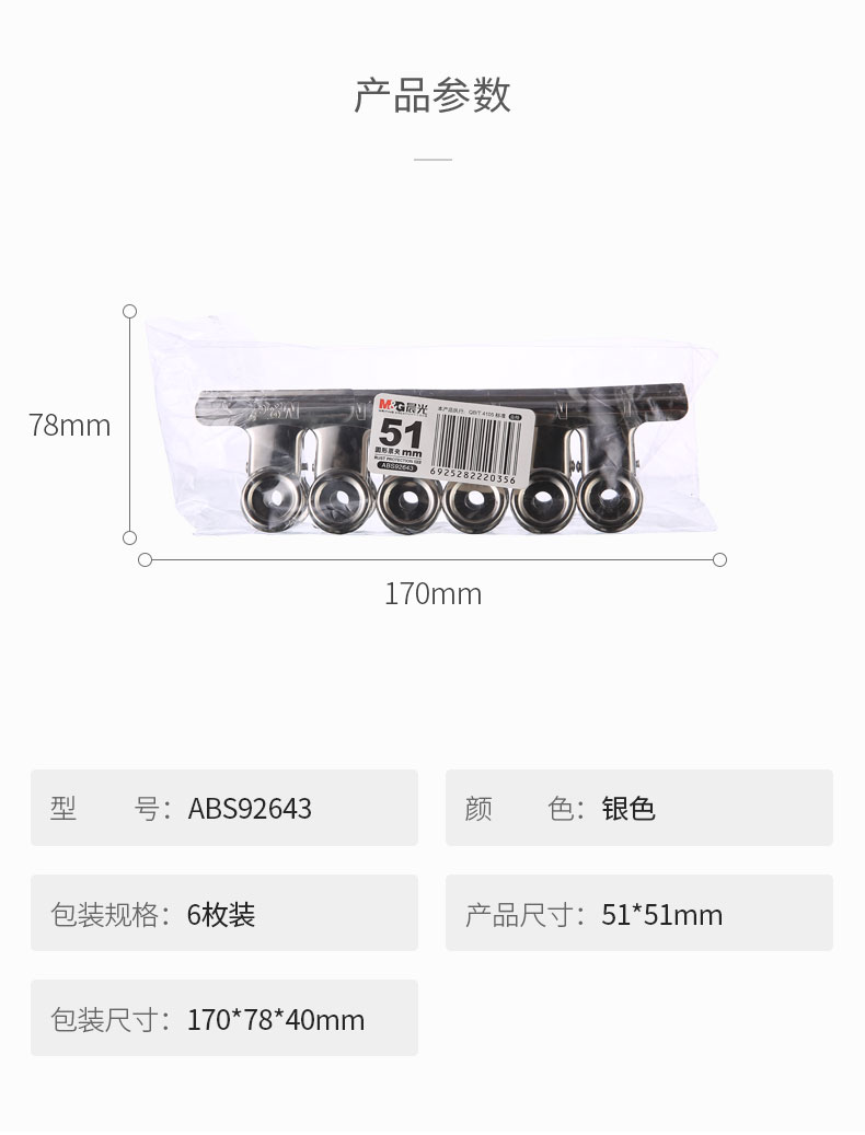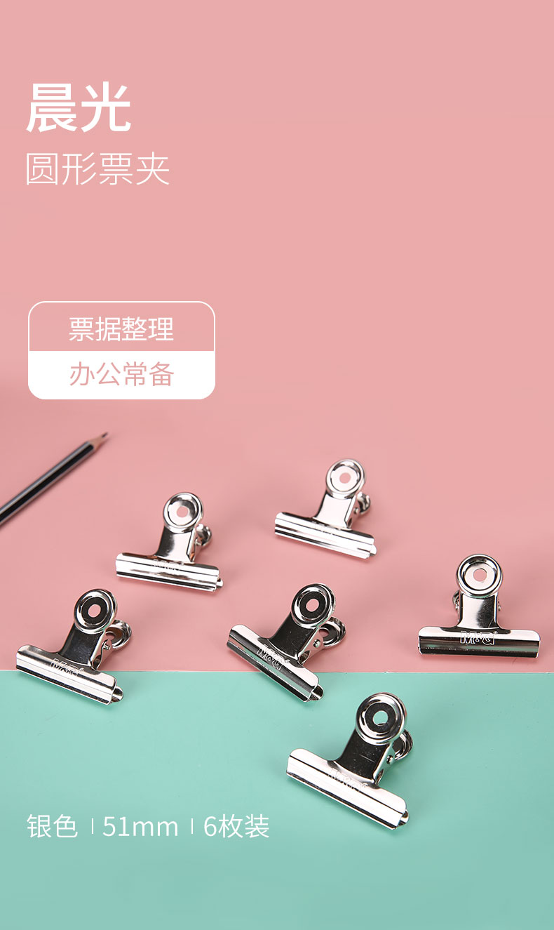 - 商品名称:晨光(M&G)文具51mm银色圆形票夹 办公资料整理夹 不锈钢财务票据夹 6个装ABS92643
