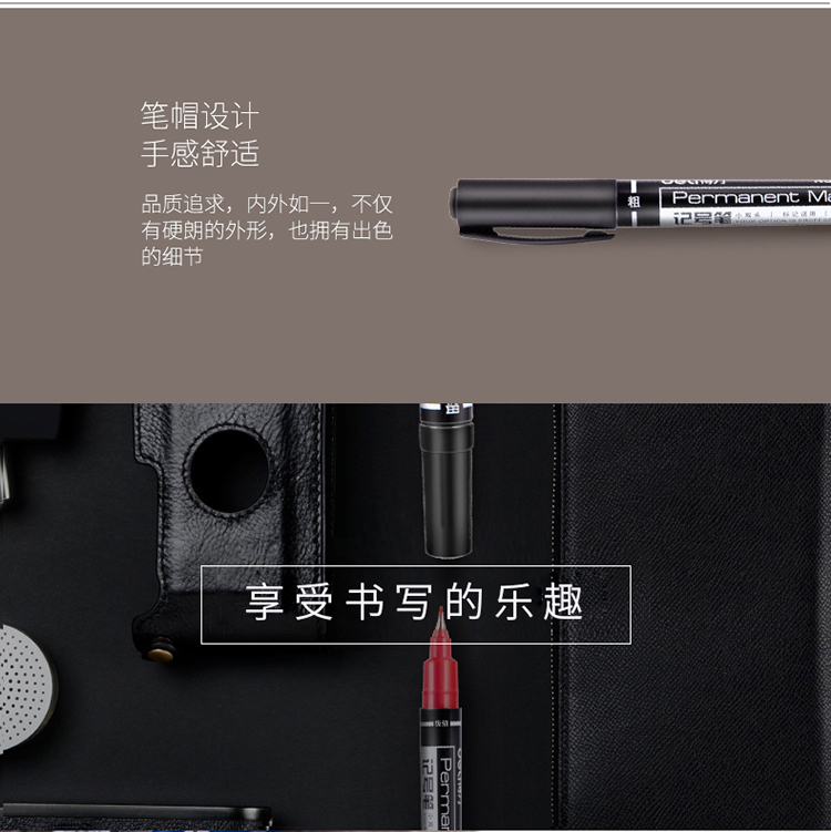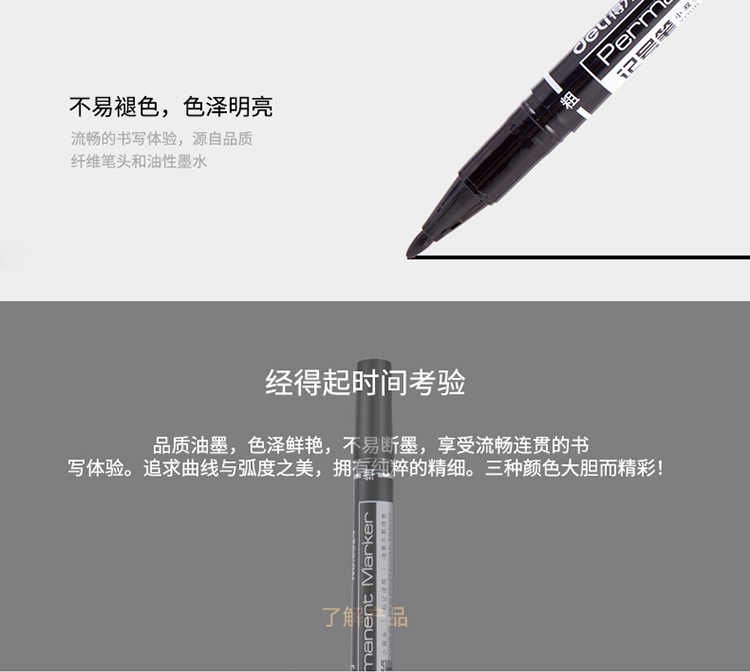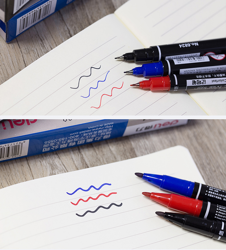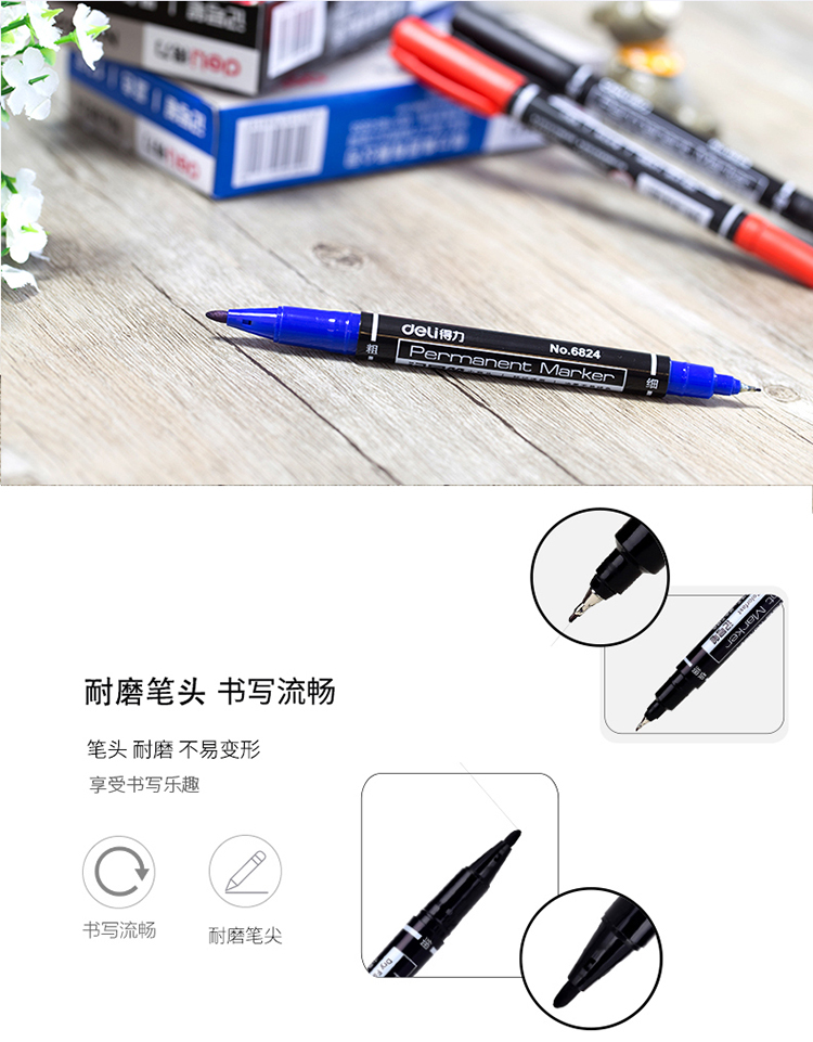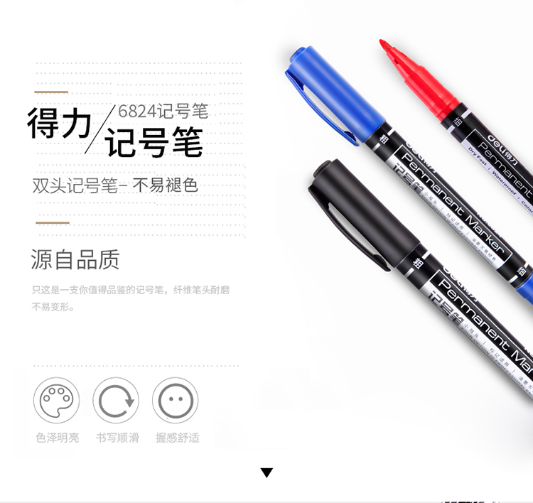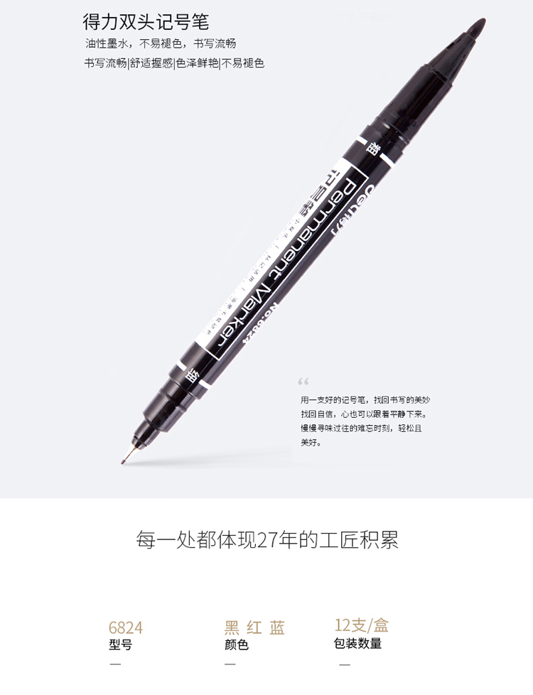 - 商品名称:得力(deli)黑色双头多用油性记号笔签字笔 勾线笔会议笔马克笔12支/盒6824