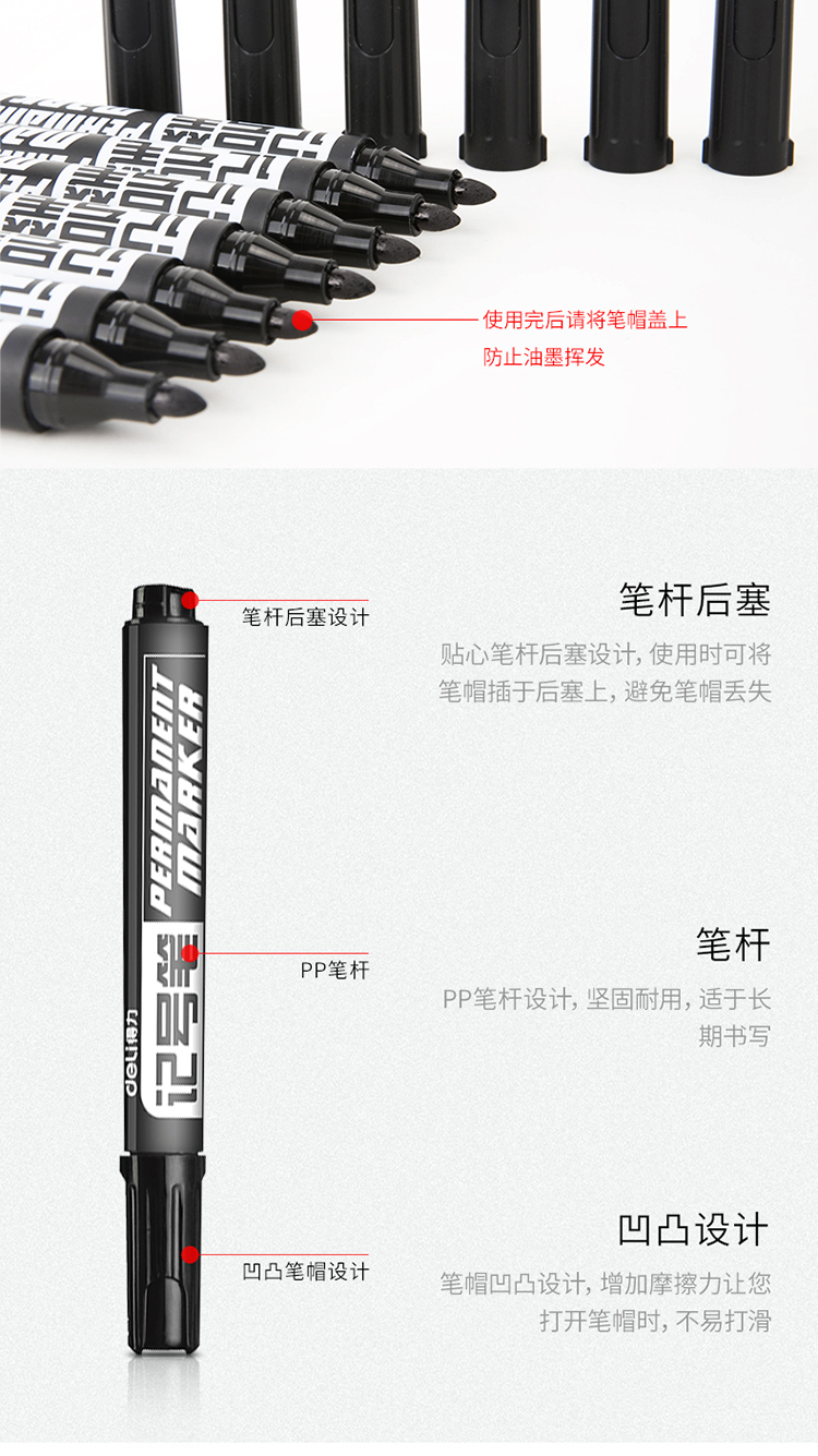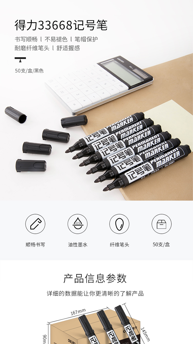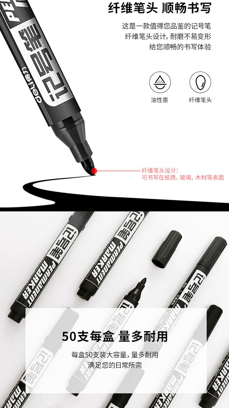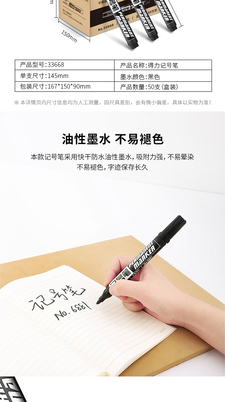 - 商品名称:得力(deli)50支物流记号笔 油性大头笔 黑色 办公用品