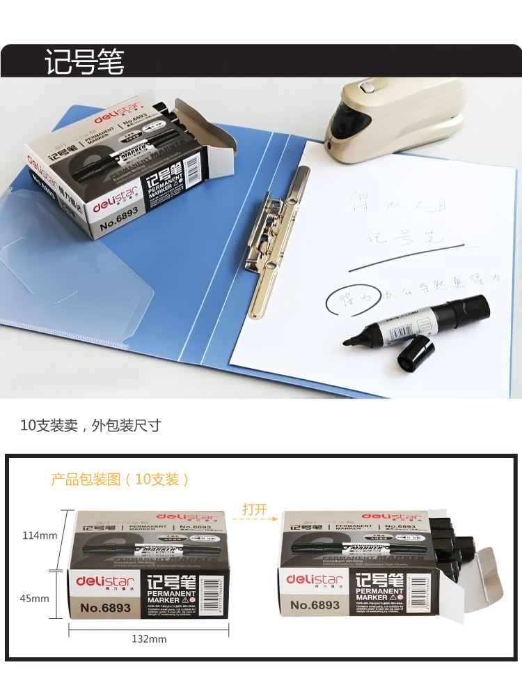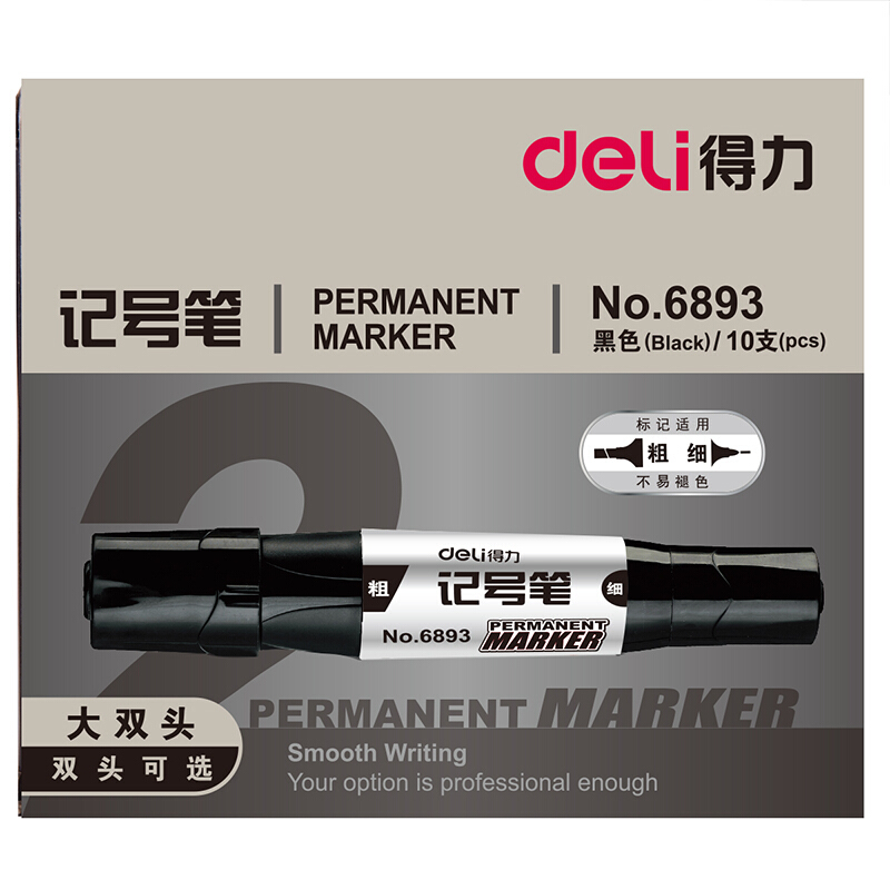 - 商品名称:得力(deli)6893记号笔物流快递专用单双头油性记号笔大头笔10支装