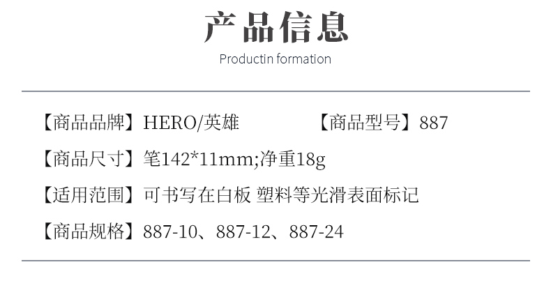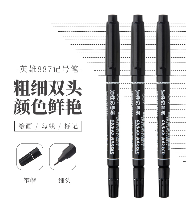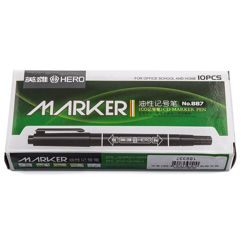 - 商品名称:英雄(HERO)记号笔油性记号笔商务学生10支装黑色 887