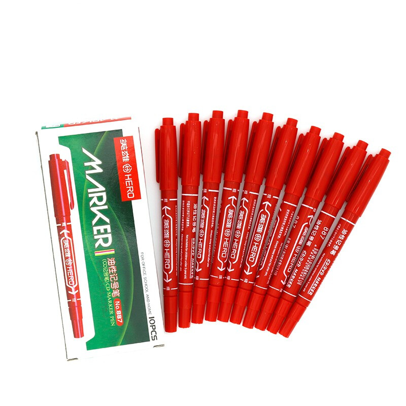 - 商品名称:英雄(HERO)彩色双头/黑色双头油性记号笔887(小头) 10支-红色