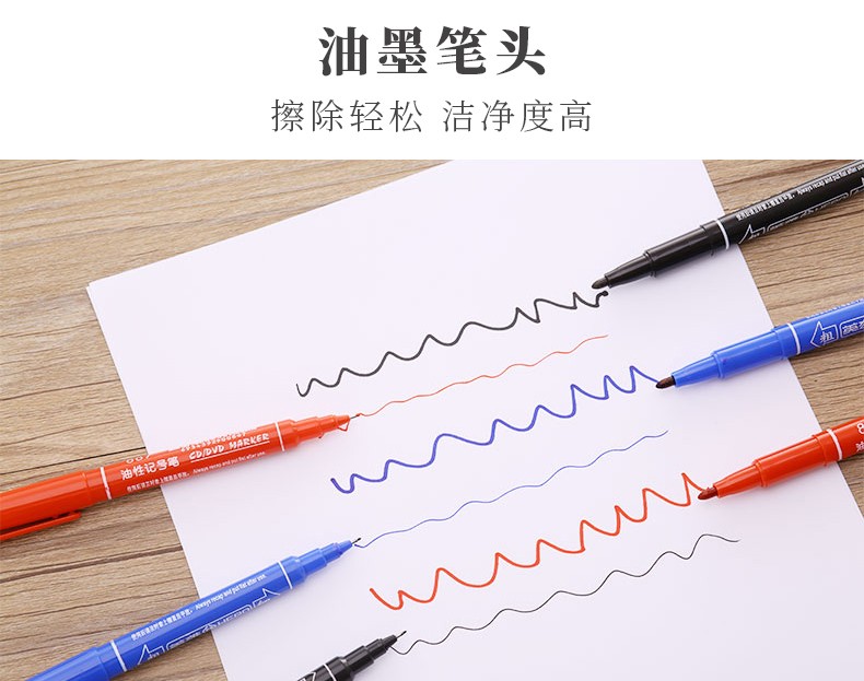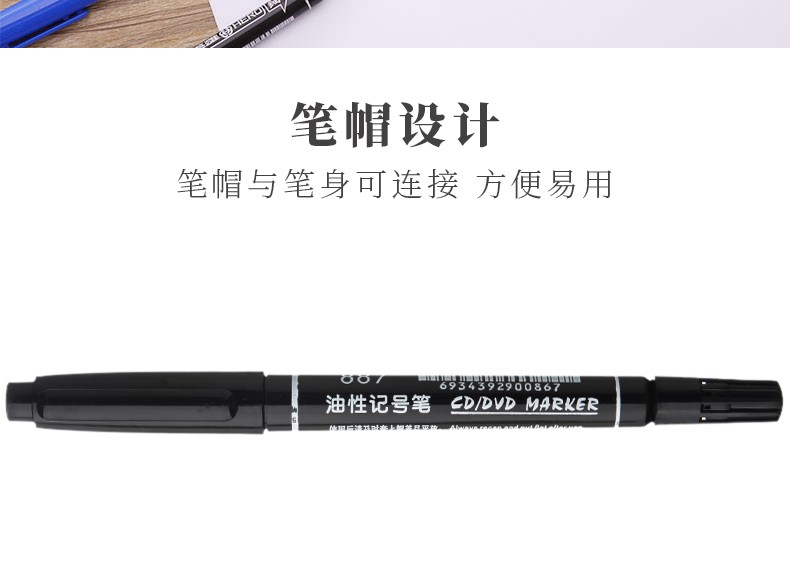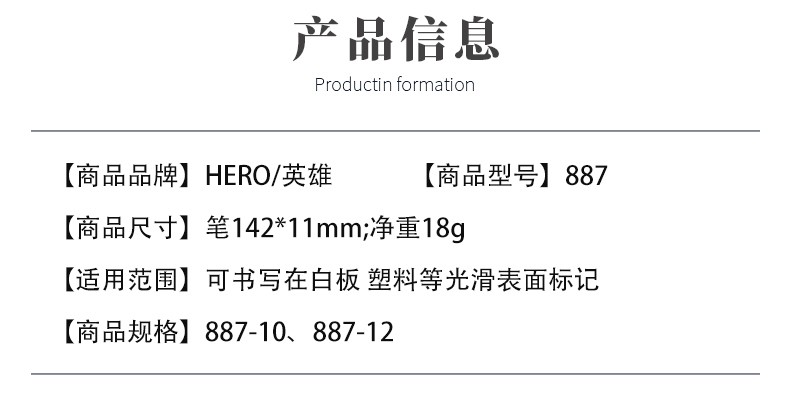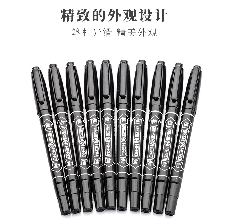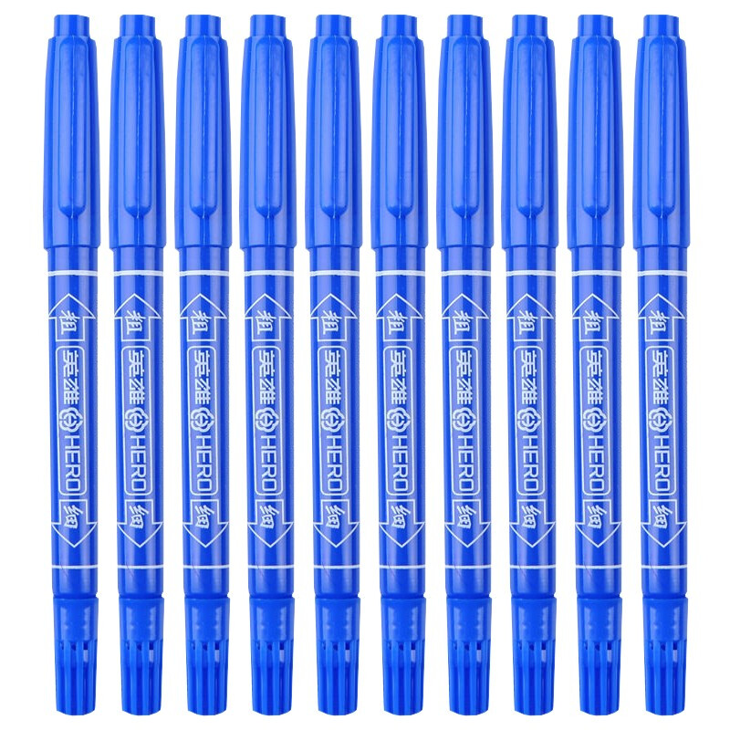 商品名称:英雄(HERO)彩色双头/黑色双头油性记号笔887(小头) 10支-蓝色