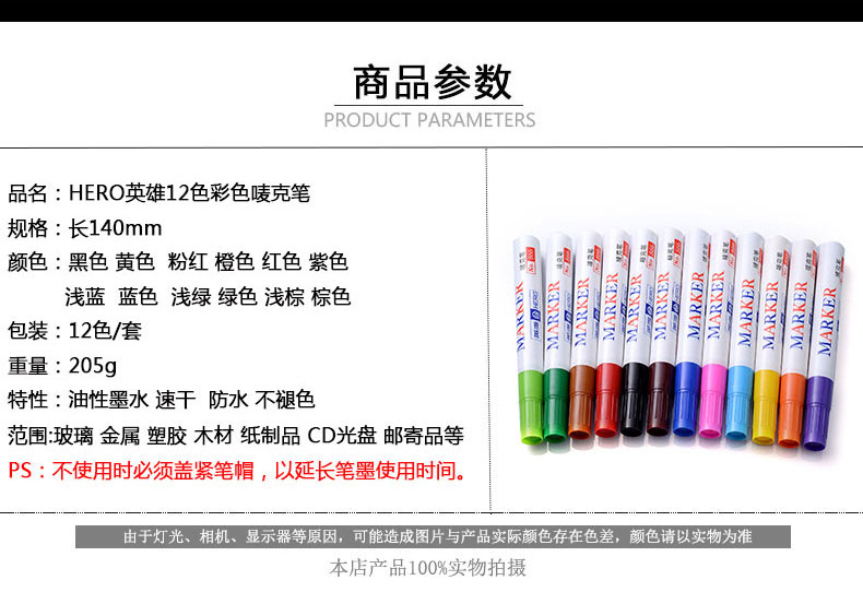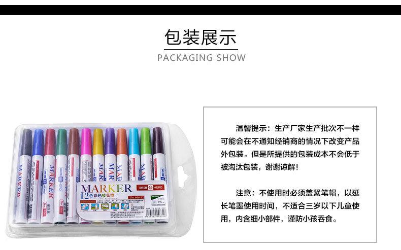- 商品名称:英雄(HERO)马克笔彩色唛克笔12色学生 866-12
