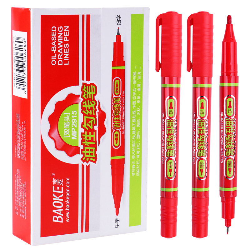 - 商品名称:宝克(BAOKE) MP2915 粗细双头多用油性勾线笔记号笔 会议笔签字笔马克笔红色12支/盒