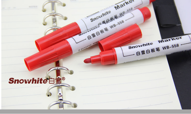 白雪(snowhite)WB-558单头红色白板笔可擦易擦办公记号笔会议笔10支/盒