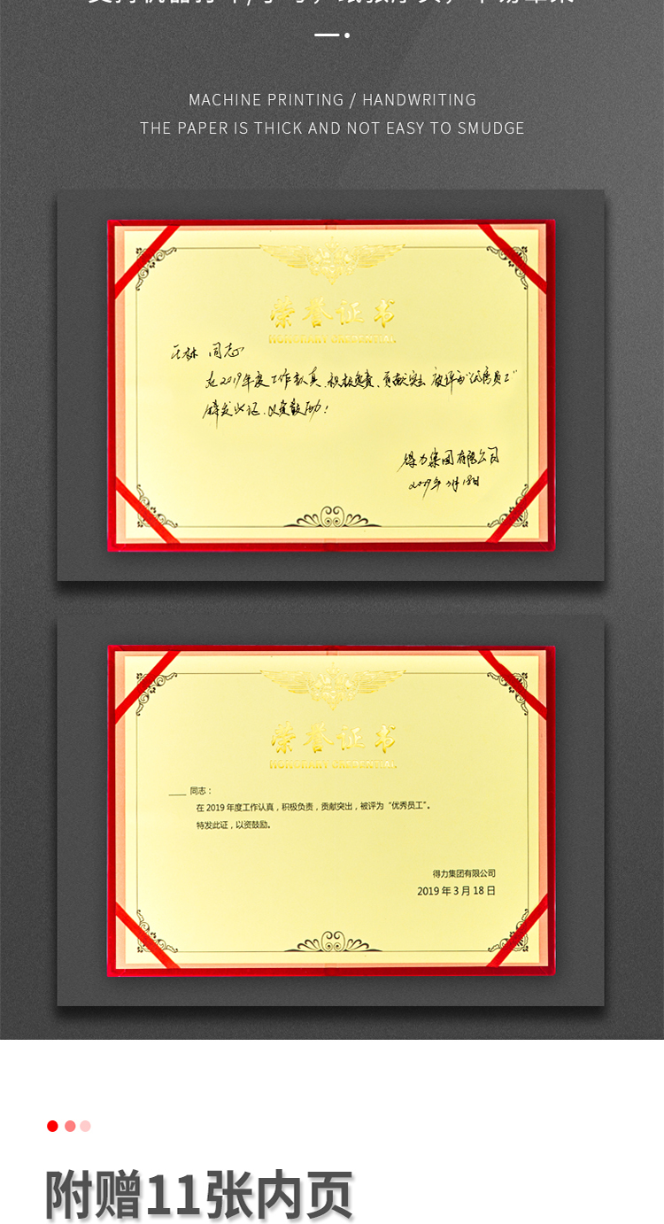 得力(deli)10本6K绒面荣誉证书附带内芯 50703-10