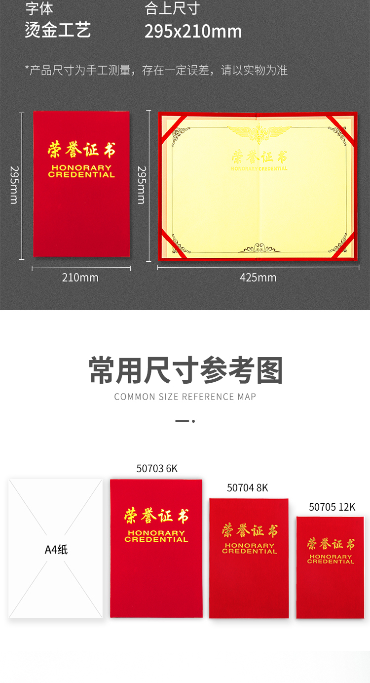 商品名称:得力(deli)10本6K绒面荣誉证书附带内芯 50703-10