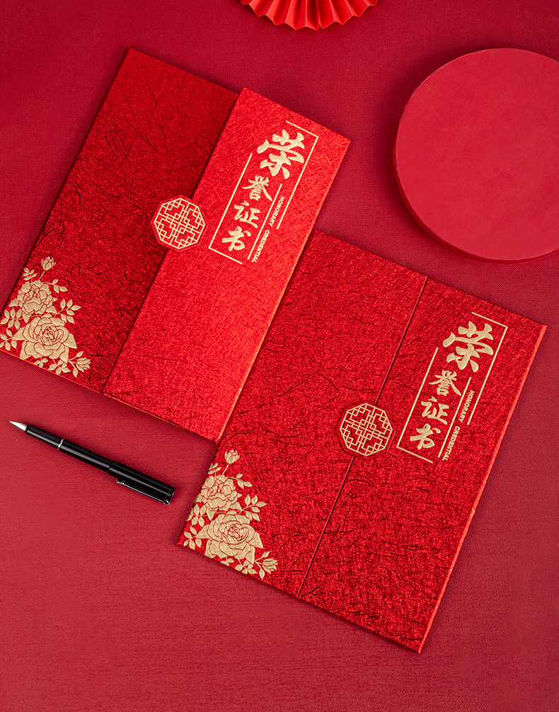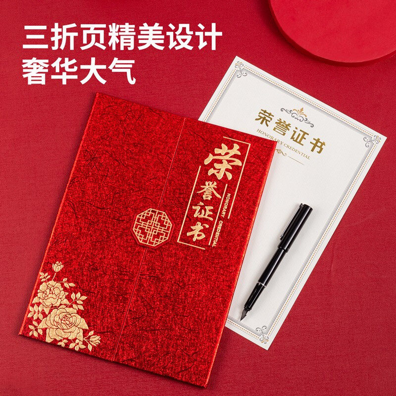 得力(deli) 单本12K荣誉证书 三折页设计 特种纸封面 附内芯/打印模板 24819