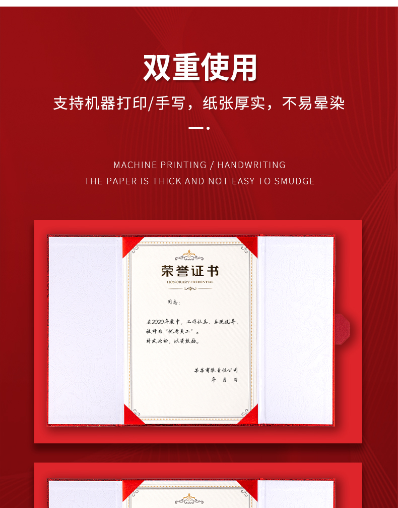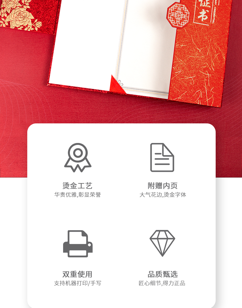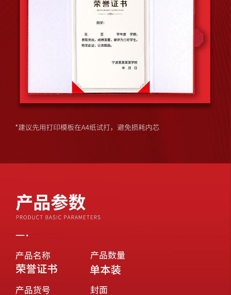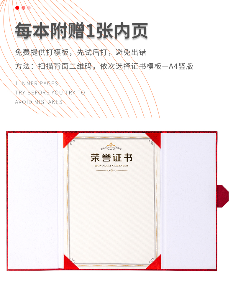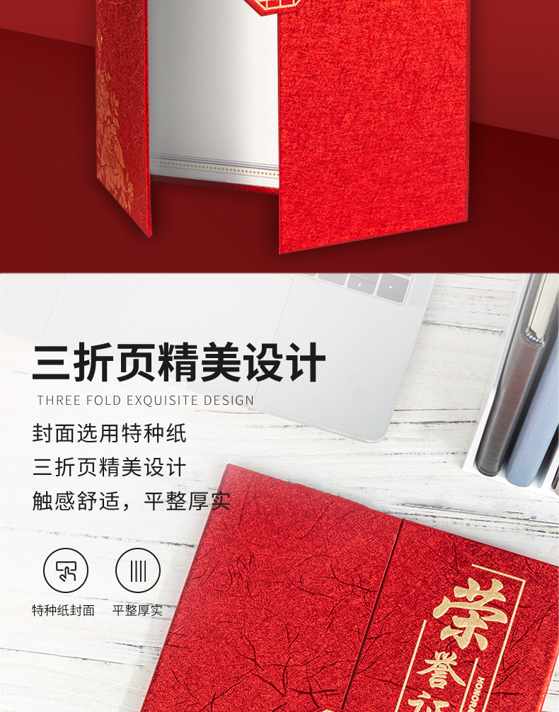 商品名称:得力(deli) 单本12K荣誉证书 三折页设计 特种纸封面 附内芯/打印模板 24819