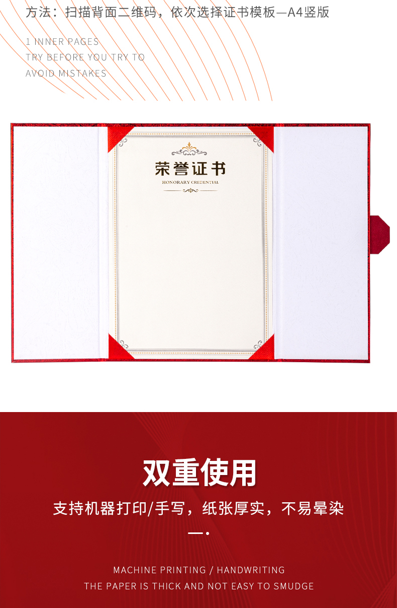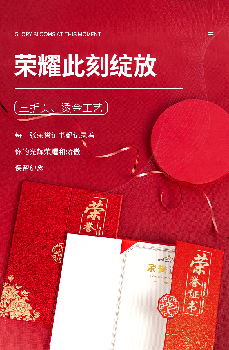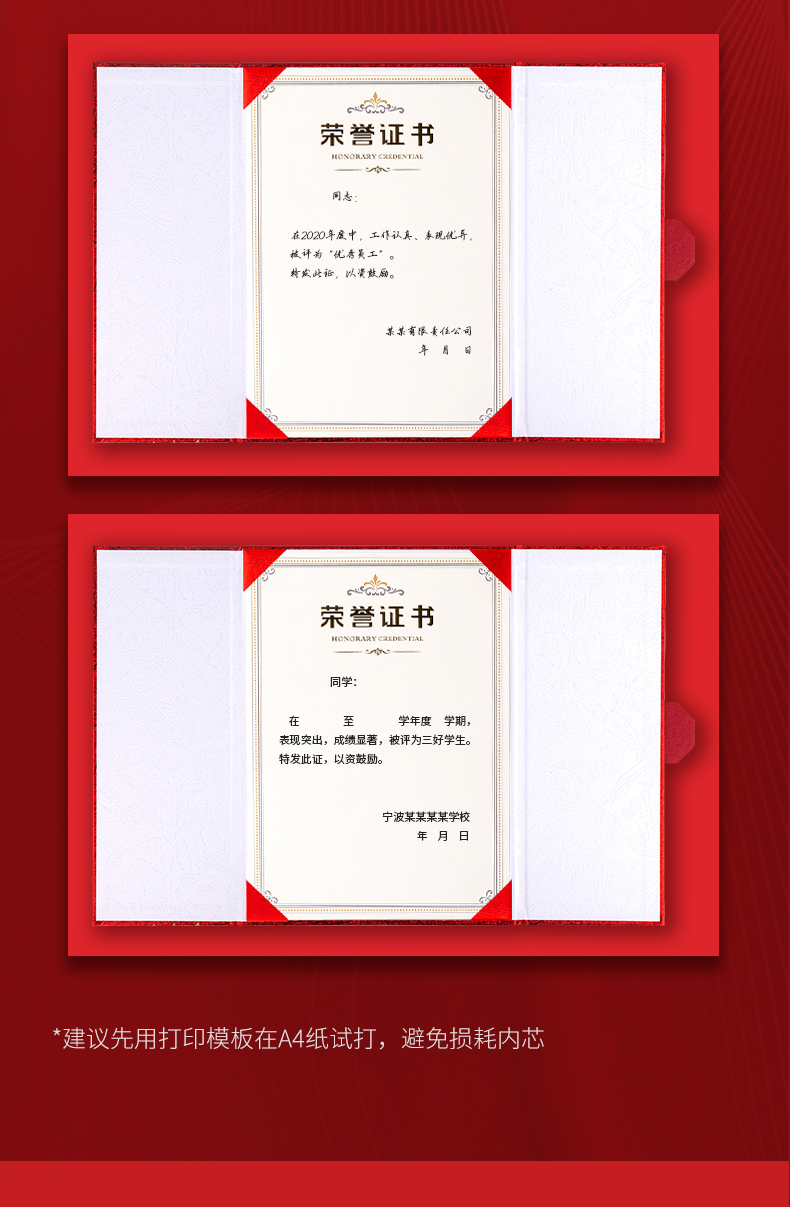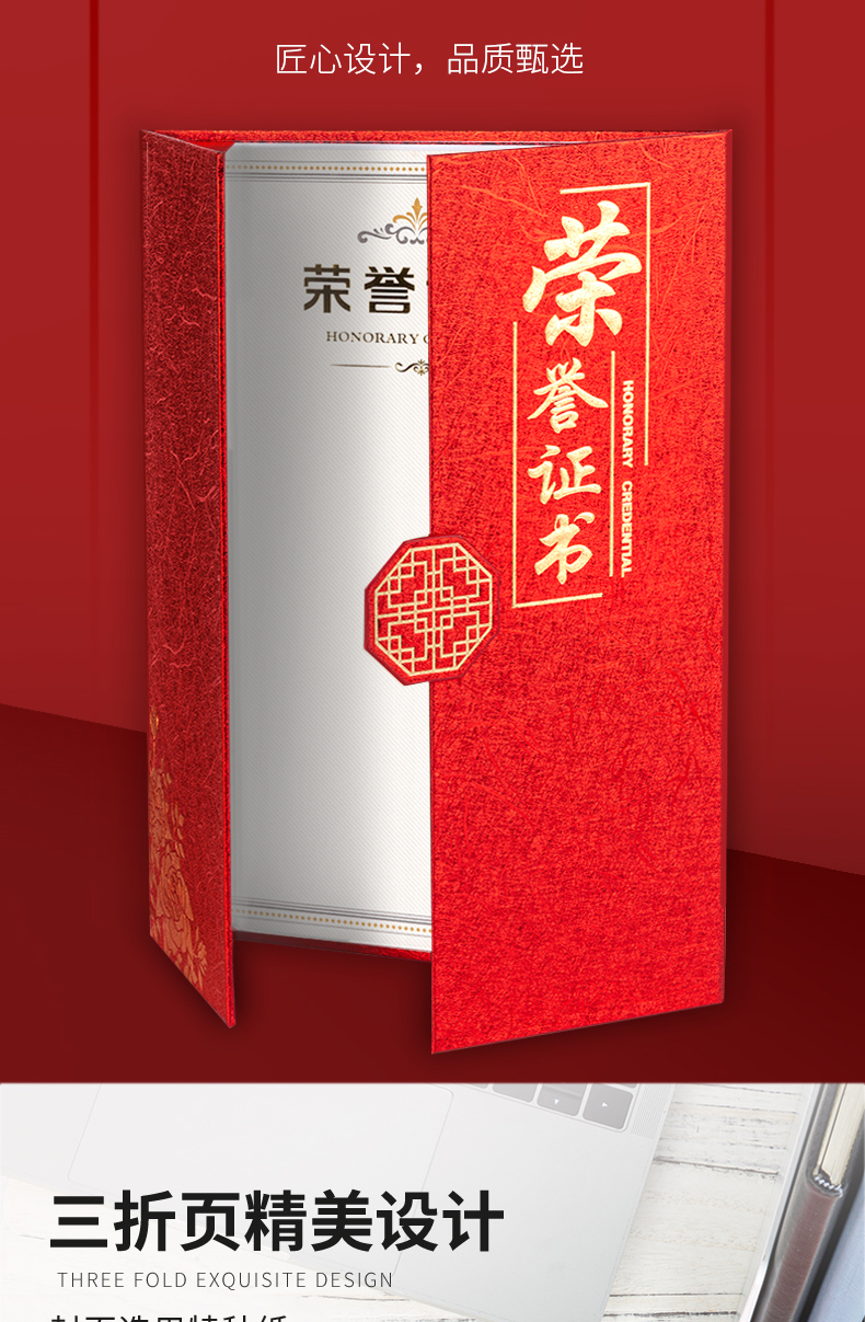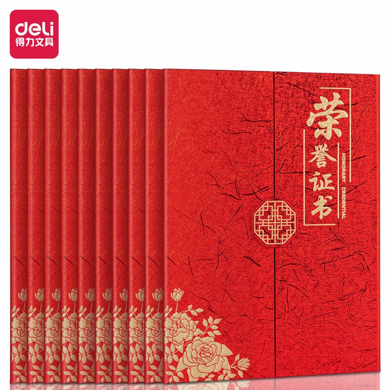 商品名称:得力(deli) 10本12K荣誉证书 三折页设计 特种纸封面 附内芯/打印模板 24819