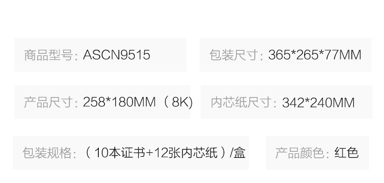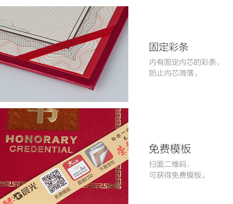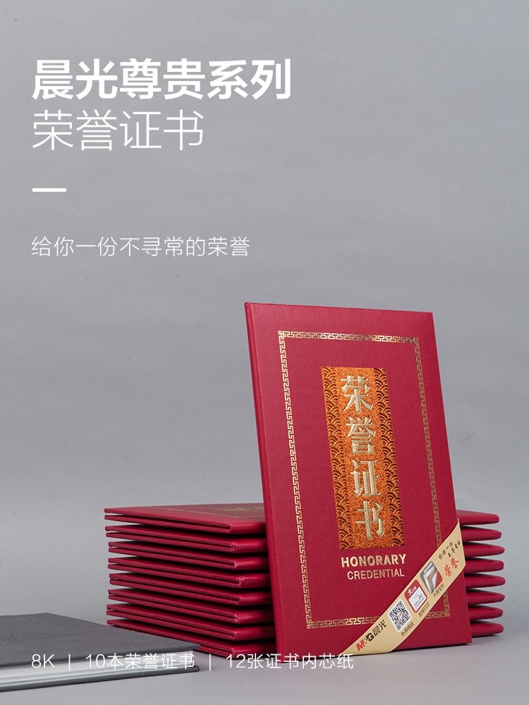 商品名称:晨光(M&G)文具8K红色高档荣誉证书 258*180mm烫金竖式证书 尊贤系列学校/企业褒奖证书 10本装ASCN9515