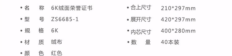 - 商品名称:广博(GuangBo)6K红色绒面荣誉证书带内芯 40本装 ZS6685-1