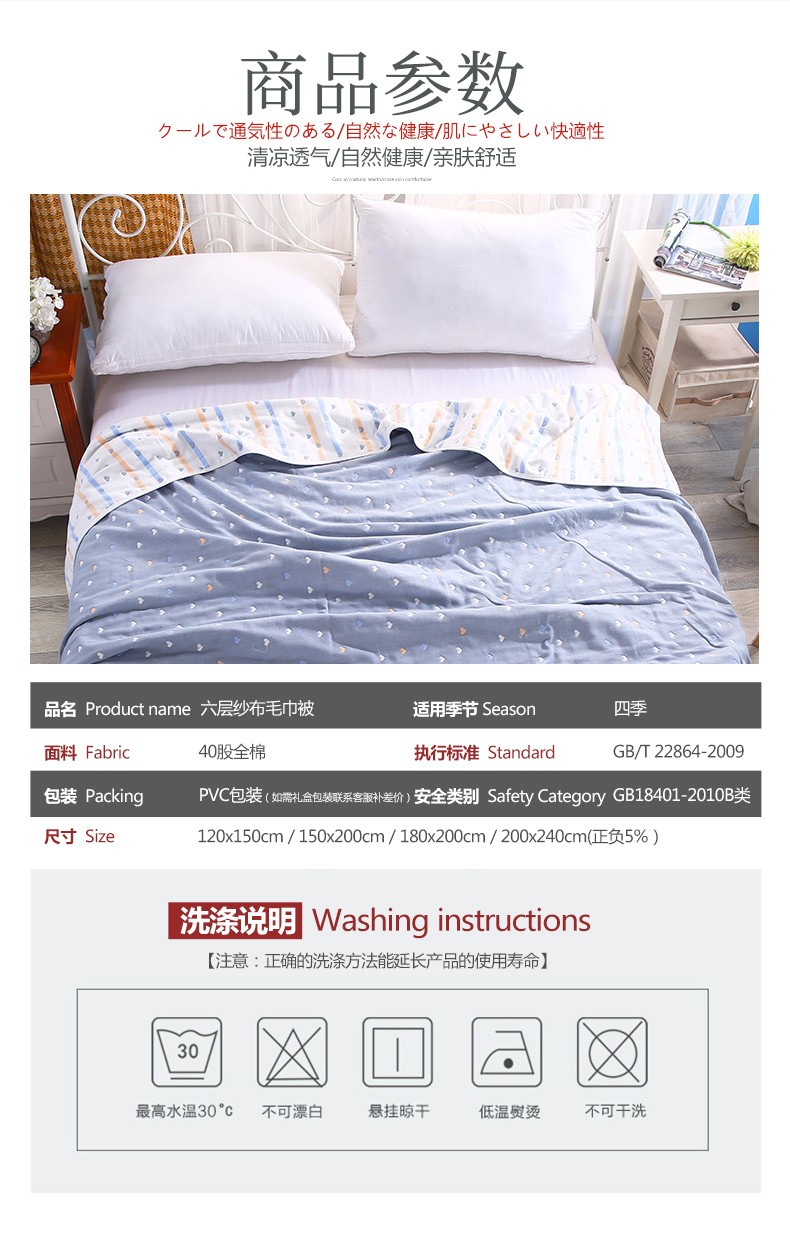 - 商品名称:南极人六层纱布毛巾被纯棉夏被空调被子毛毯被子单人双人全棉毛毯加厚童婴儿午睡毯纱布盖毯 星星粉色 200*230