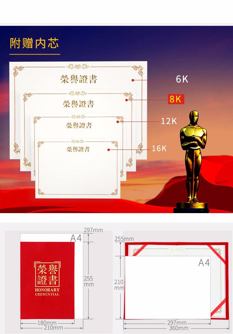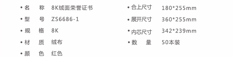 - 商品名称:广博(GuangBo)8K红色绒面荣誉证书带内芯 50本装 ZS6686-1