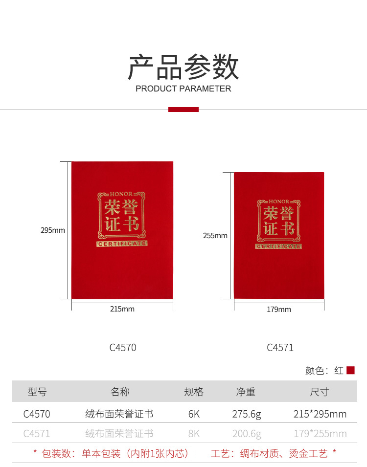 - 商品名称:齐心(COMIX)6K 绒面荣誉证书 单本装C4570
