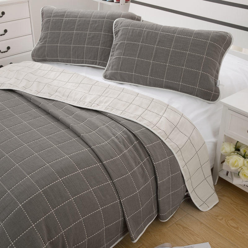 北极绒(Beijrog) 全棉六层纱毛巾被 纯棉夏被空调被毛毯学生儿童盖毯卡通毯子被子毛毯被 虚线格灰色【XQ】 150*200cm单人加大毛巾被