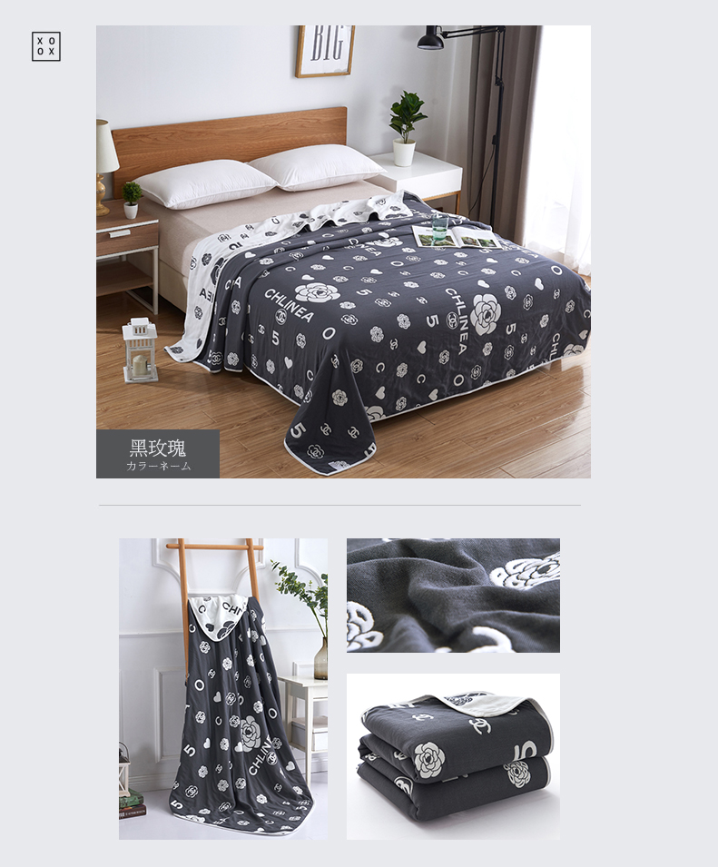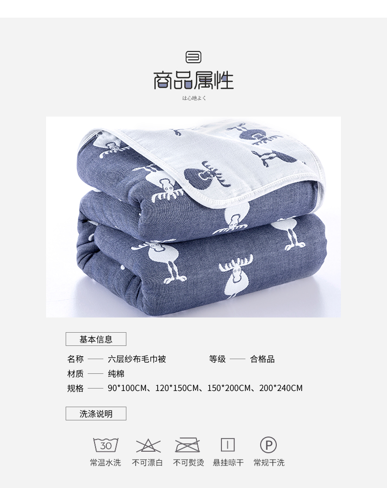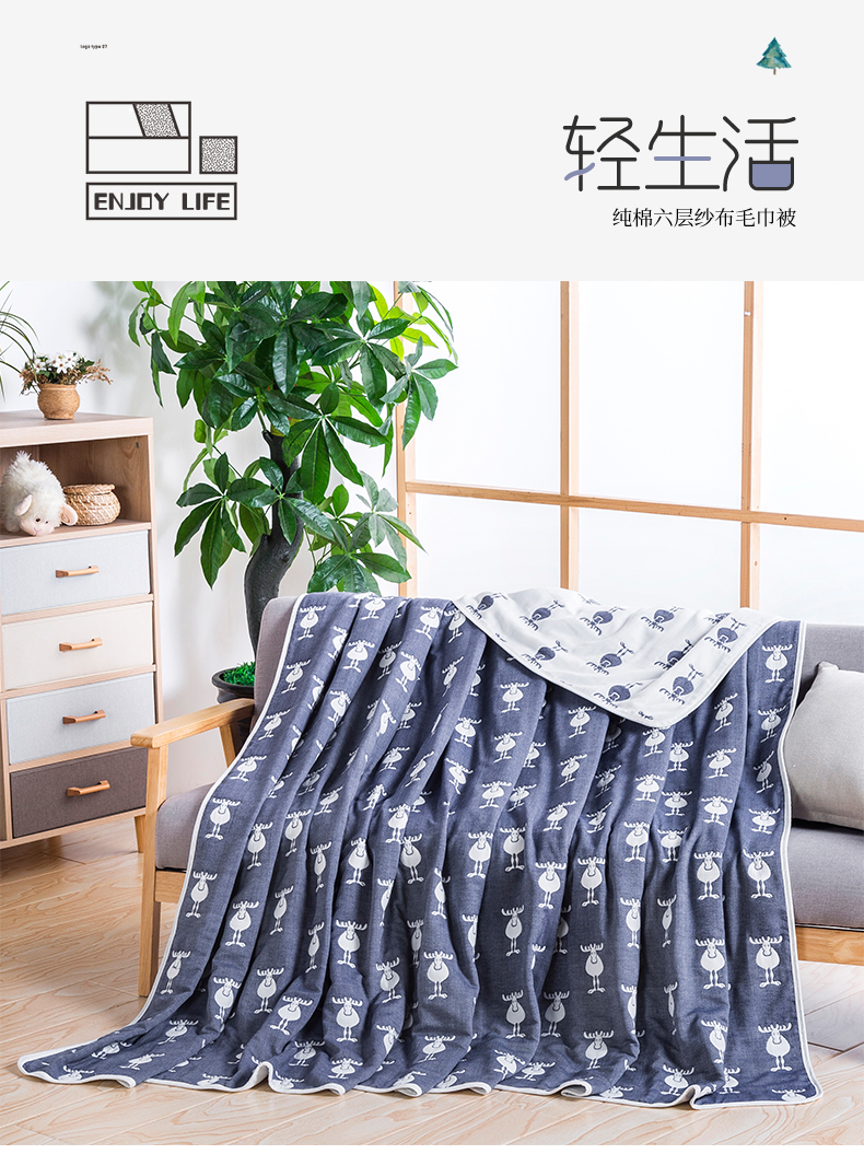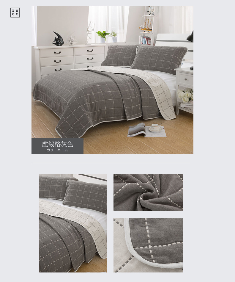 商品名称:北极绒(Beijrog) 全棉六层纱毛巾被 纯棉夏被空调被毛毯学生儿童盖毯卡通毯子被子毛毯被 虚线格灰色【XQ】 150*200cm单人加大毛巾被