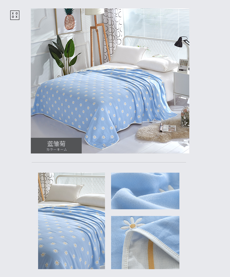 北极绒 毛巾被纯棉全棉空调被三层纱布巾盖毯毯子儿童午睡毛毯婴幼儿纱布浴巾 巧格蓝 150*200cm