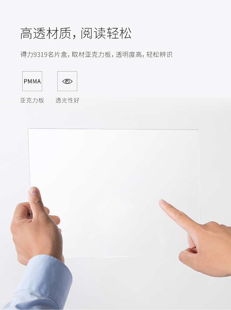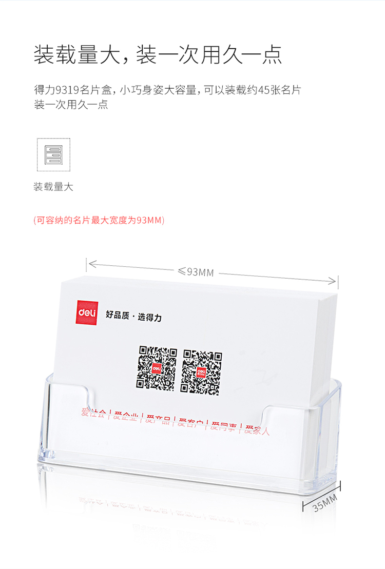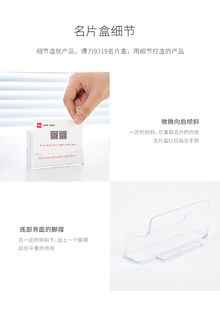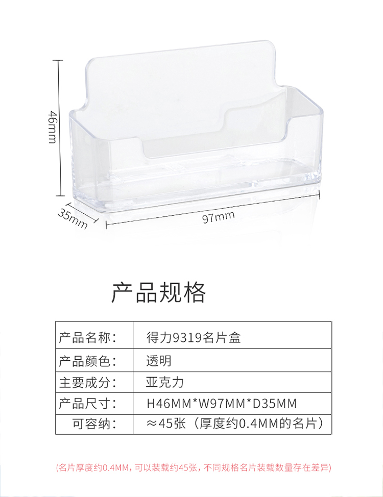 - 商品名称:得力(deli)桌面办公实用名片座 透明亚克力名片收纳展示盒9319