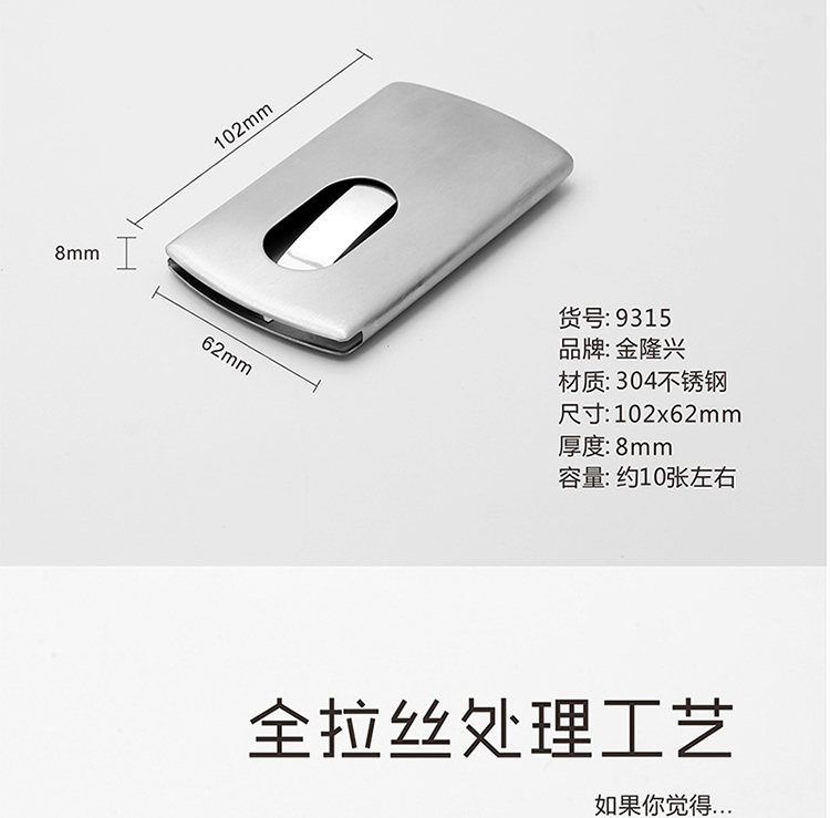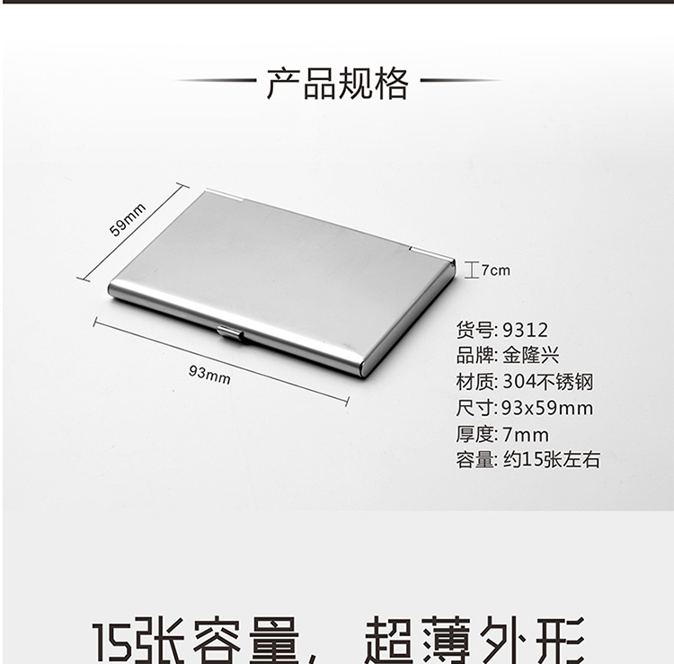 - 商品名称:金隆兴(Glosen)便捷商务名片盒 不锈钢随身翻盖名片夹商务高档男女卡包 9312
