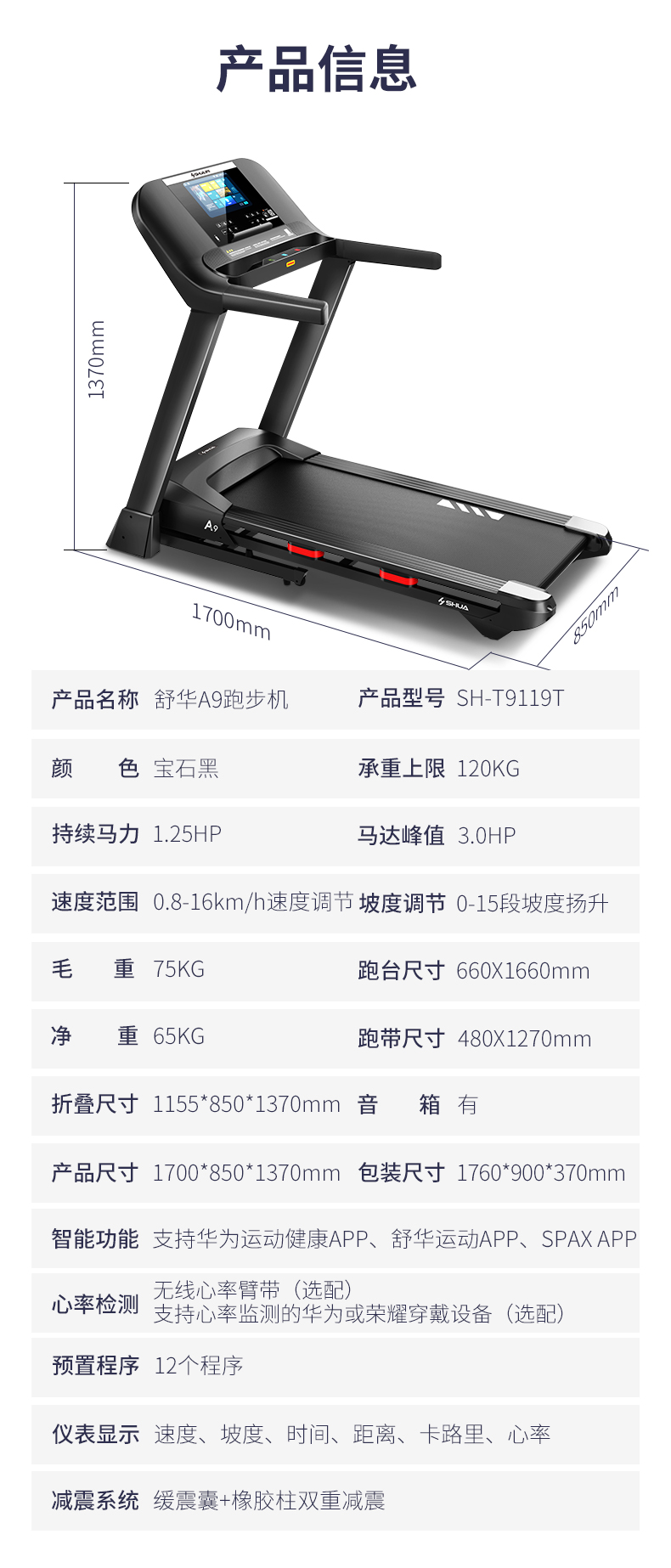 - 商品名称:舒华(SHUA)SH-T9119T 10.1英寸彩屏家用可折叠智能跑步机支持华为运动健康APP ZS