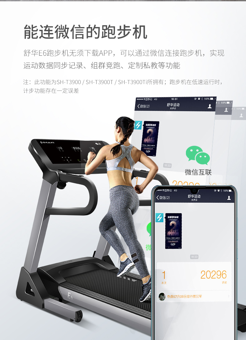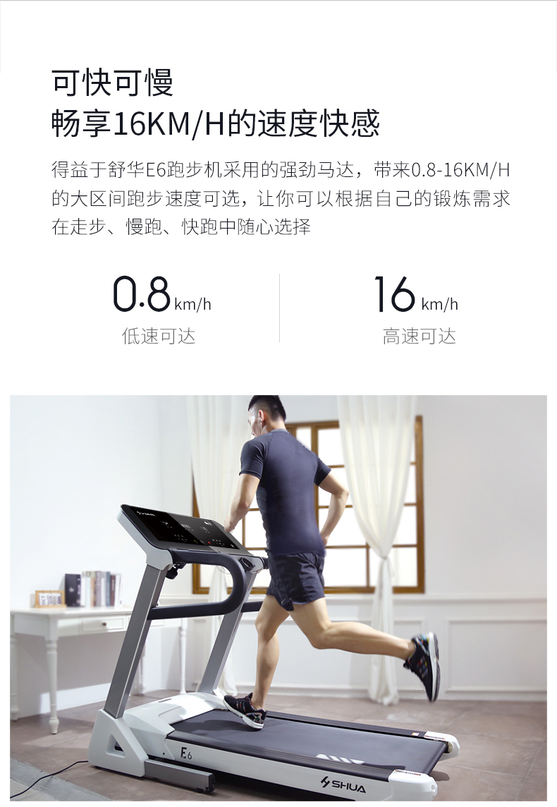 - 商品名称:舒华(SHUA)跑步机E6家用折叠减震静音智能微信互联SH-T3900素墨黑 ZS