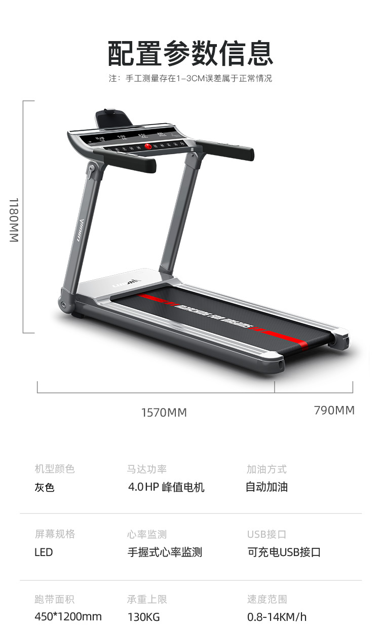 - 商品名称:立久佳(LIJIUJIA) X7跑步机家用智能可折叠免安装健身器材 灰色 支持华为运动健康APP
