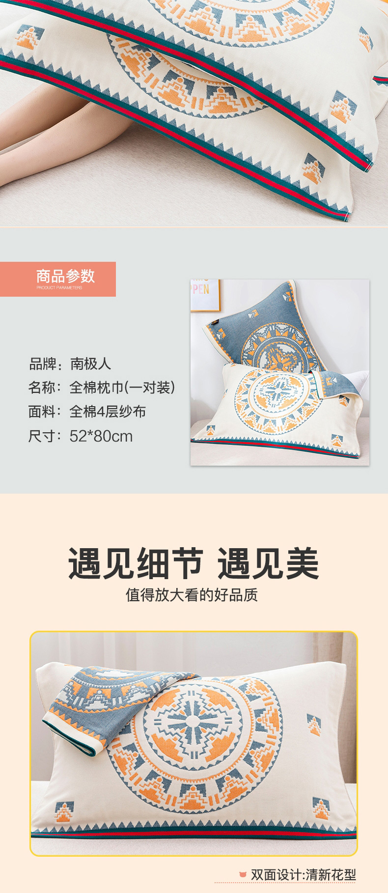 - 商品名称:南极人NanJiren 纯棉枕巾一对装 全棉纱布简约北欧高档枕头巾枕芯盖巾 纯棉枕巾