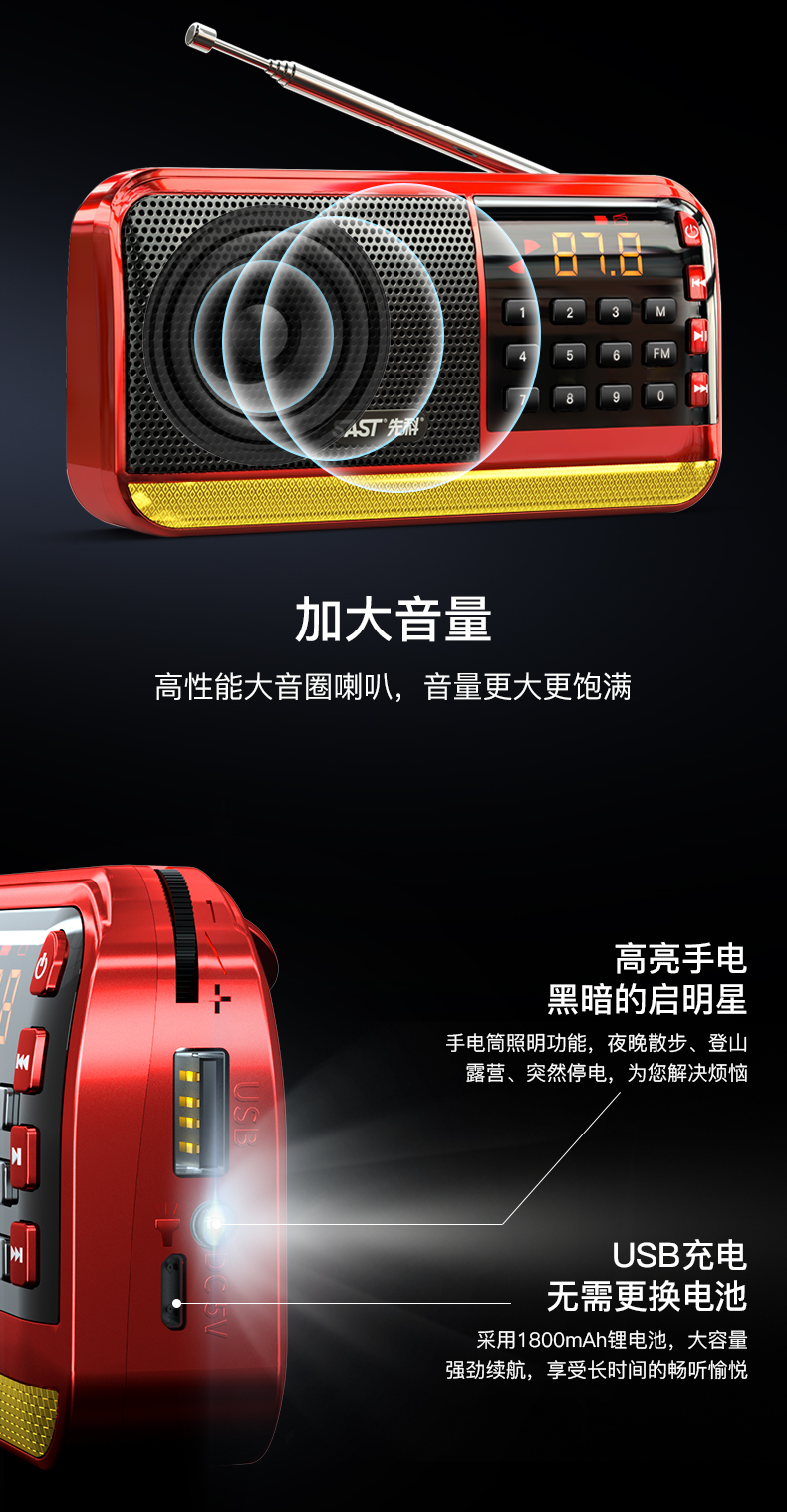 - 商品名称:先科(SAST)V30黑 收音机老人老年充电便携式插卡袖珍迷你mp3随身听校园广播FM调频数字播放器