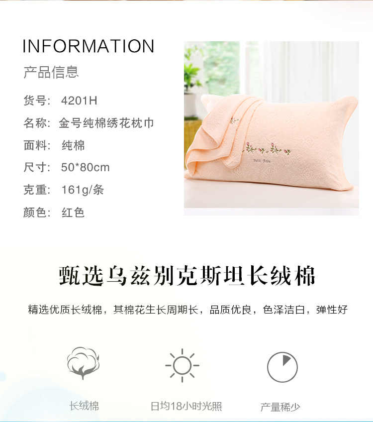 - 商品名称:金号品牌 提素螺绣 纯棉枕巾 柔软透气枕头巾 一对2条装 红色 50*80cm