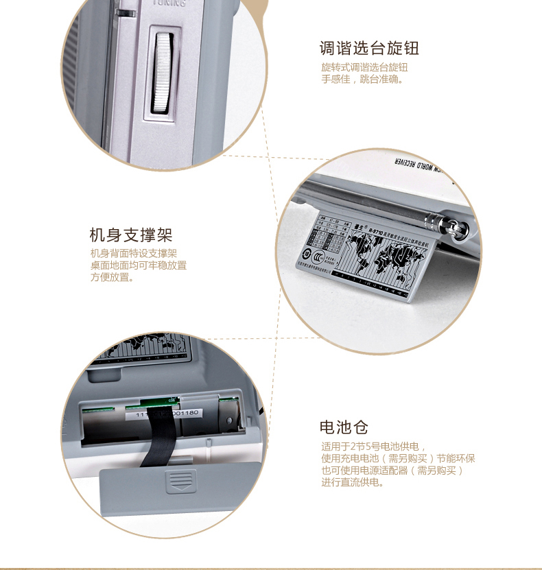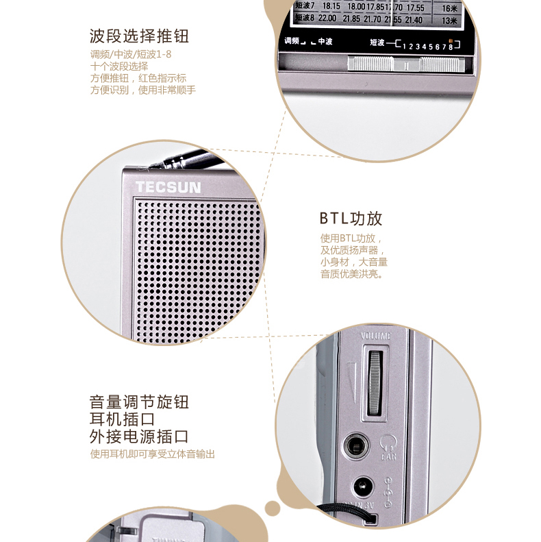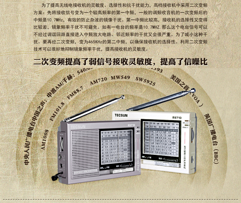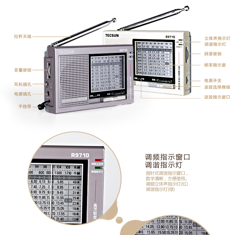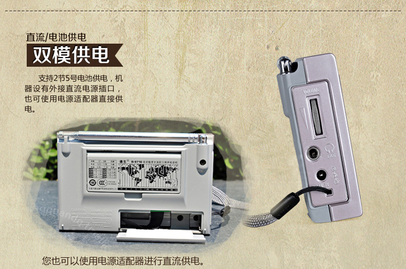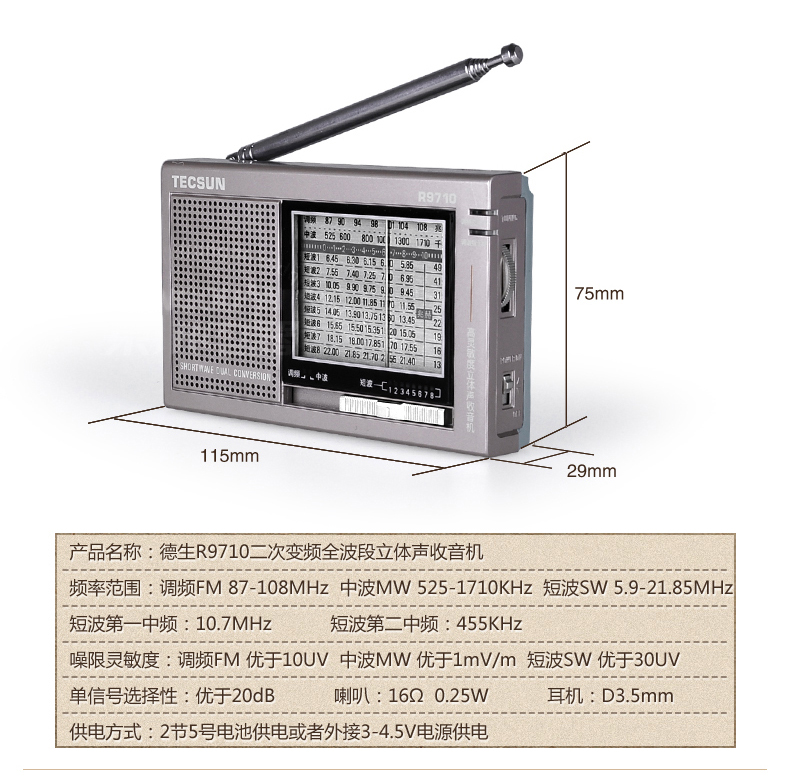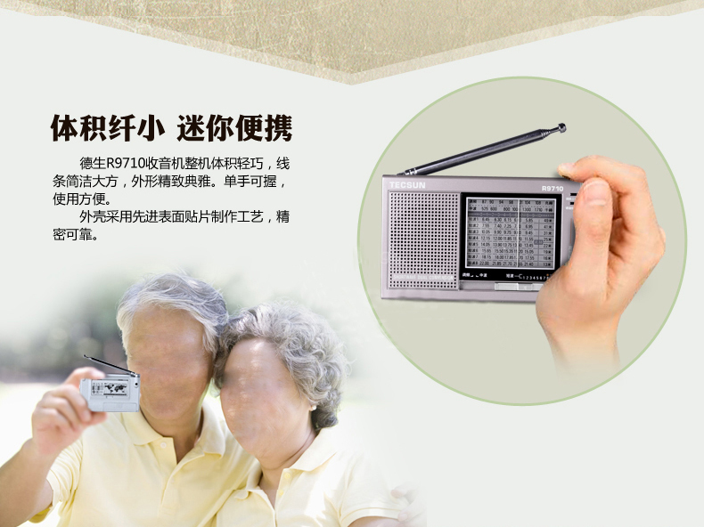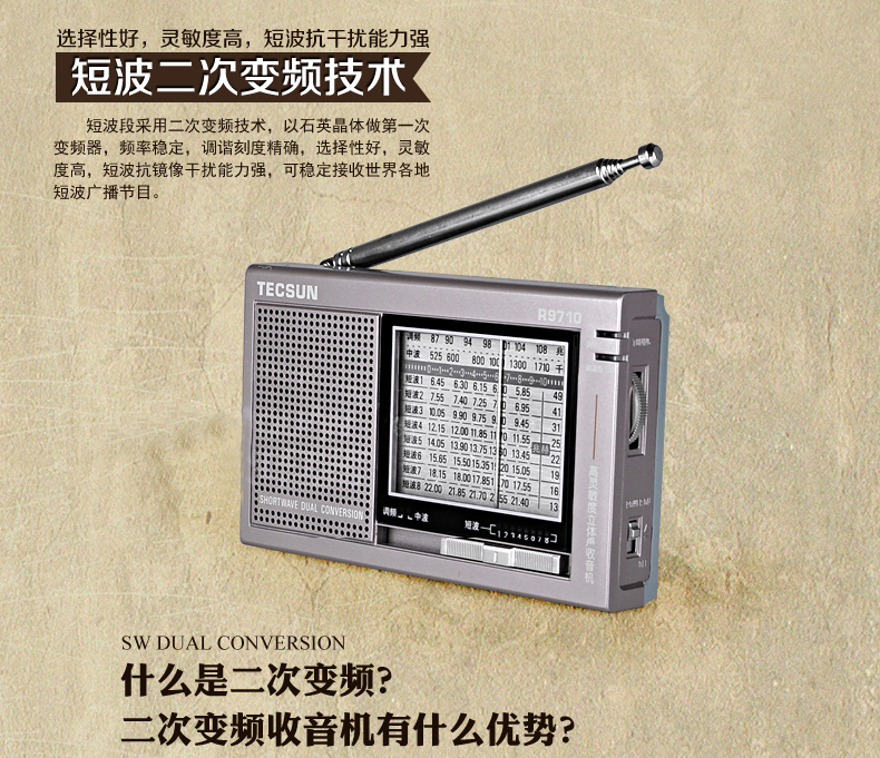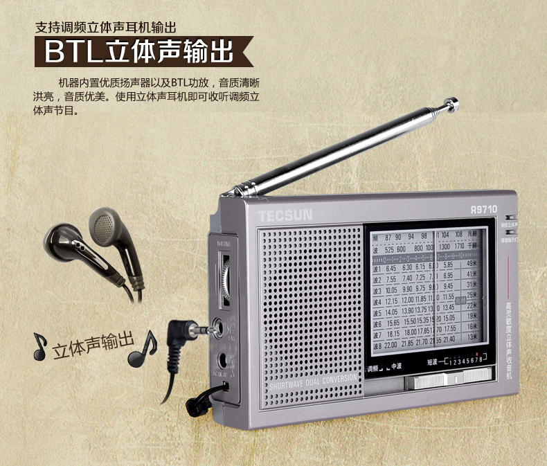 - 商品名称:德生(Tecsun)R-9710 收音机 音响 全波段 老年人半导体 英语四六级考试 高考听力 外国电台5号电池(褐色)