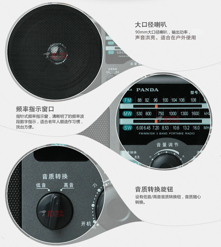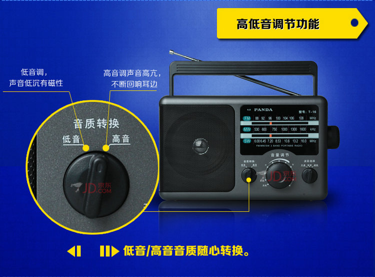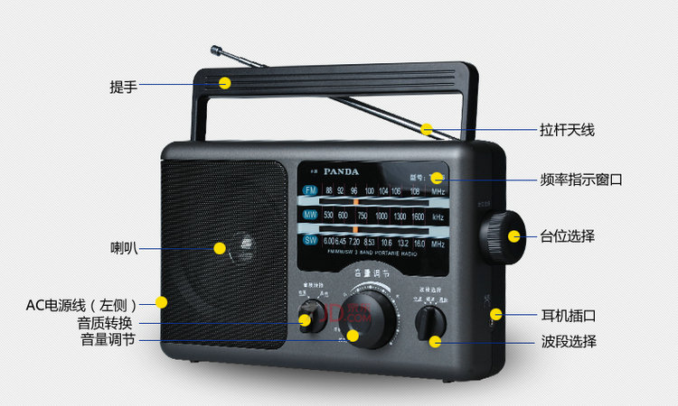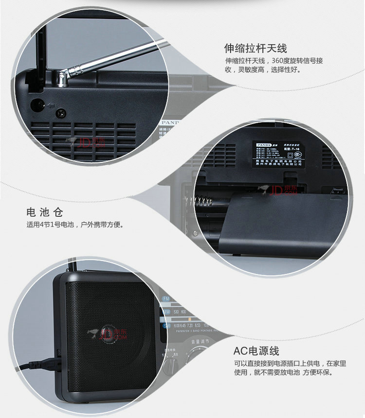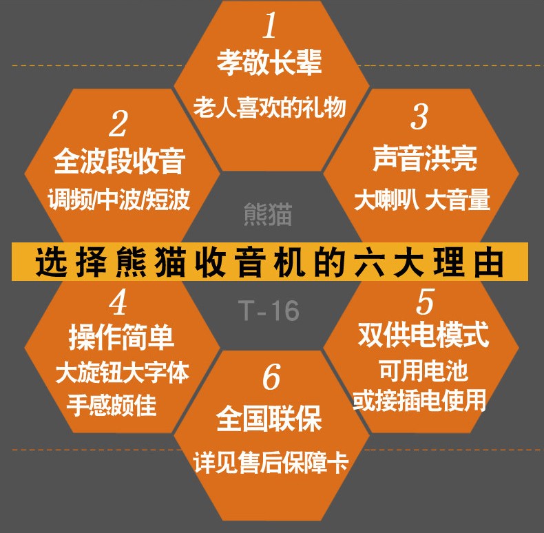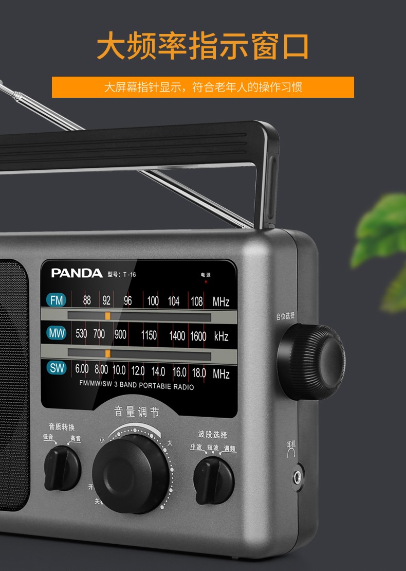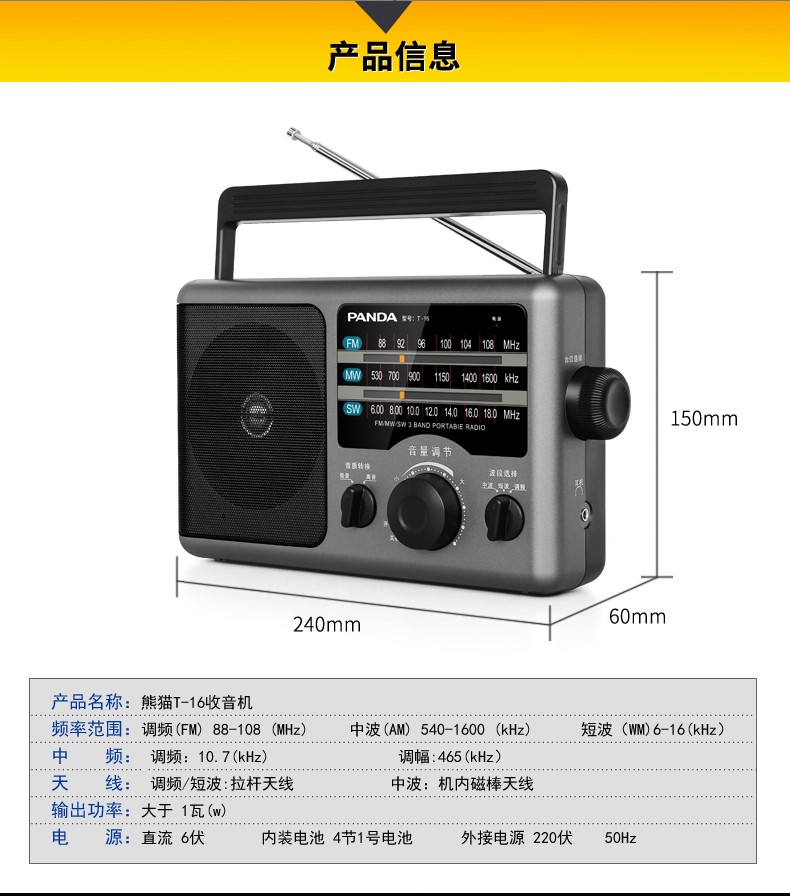 - 商品名称:熊猫(PANDA) T-16三波段收音机 老年人全波段收音机 半导体