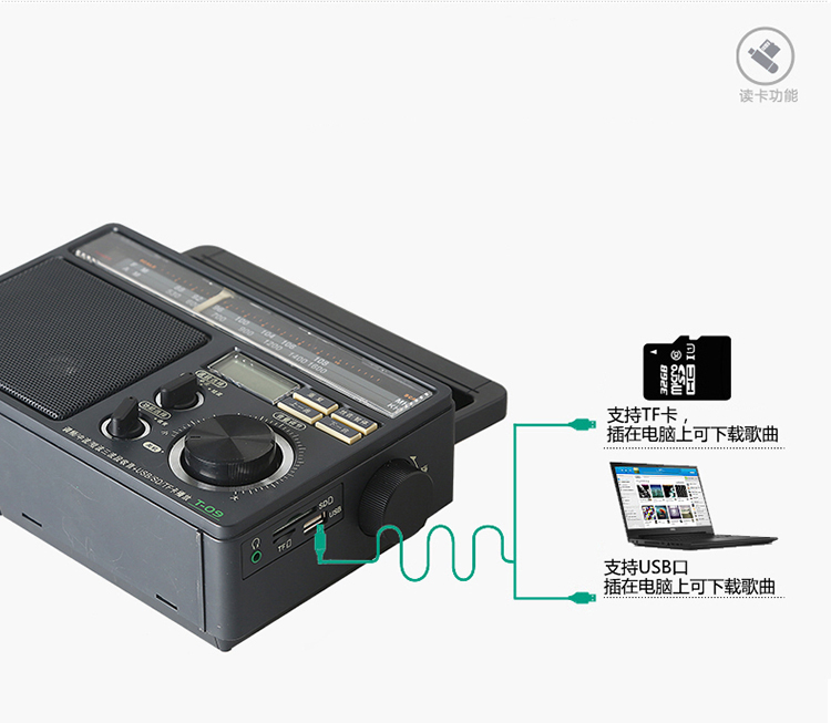 - 商品名称:熊猫(PANDA) T-09三波段插卡式(USB SD TF卡)收音机 MP3播放器 老人插卡音响 半导体