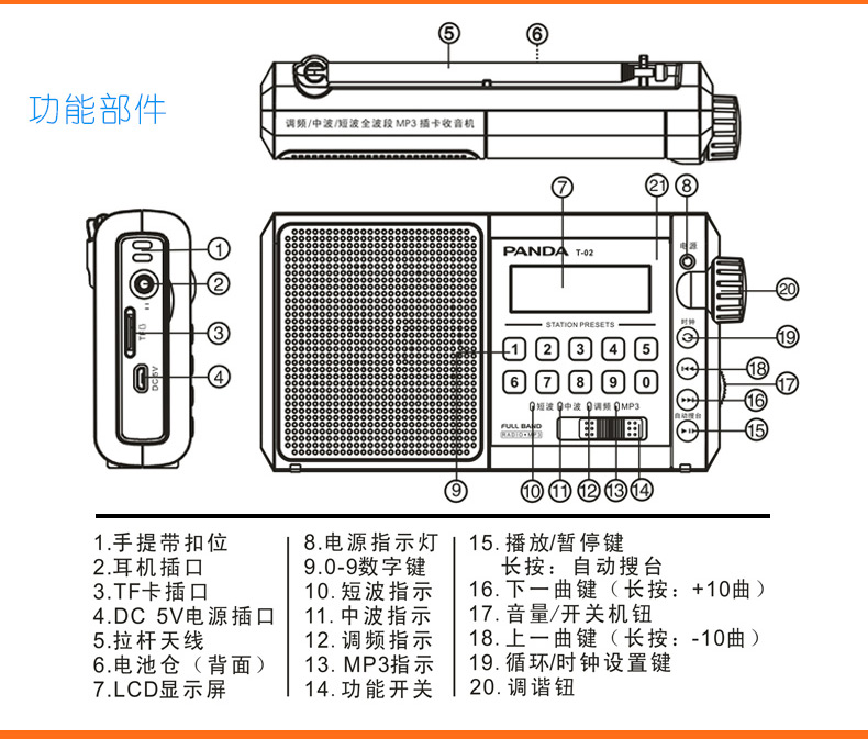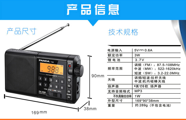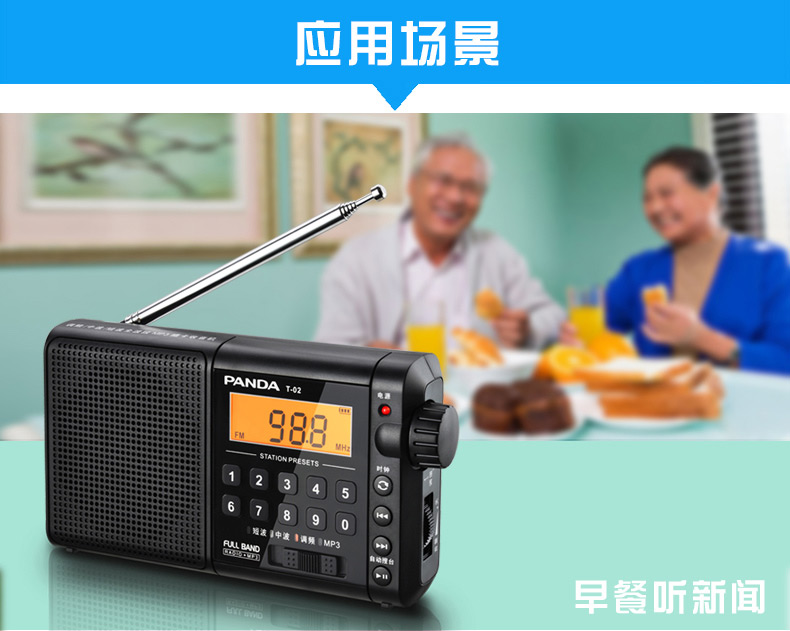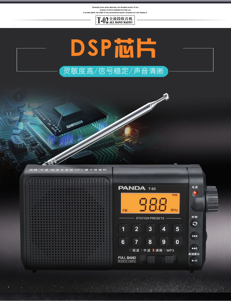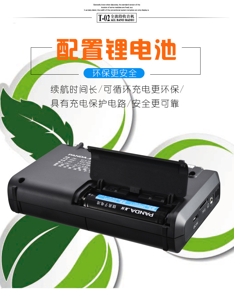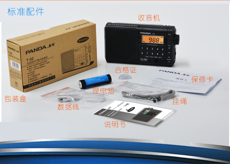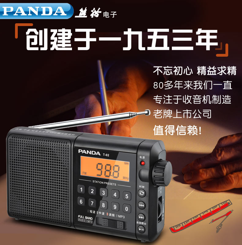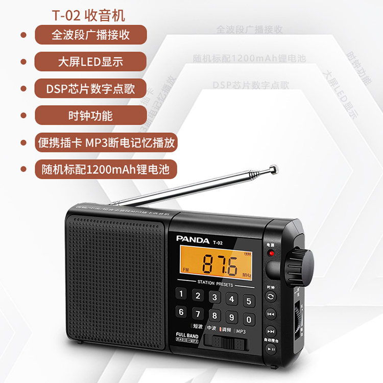- 商品名称:熊猫(PANDA)T-02全波段收音机老年人插卡TF卡便携老式可充电广播半导体 黑色