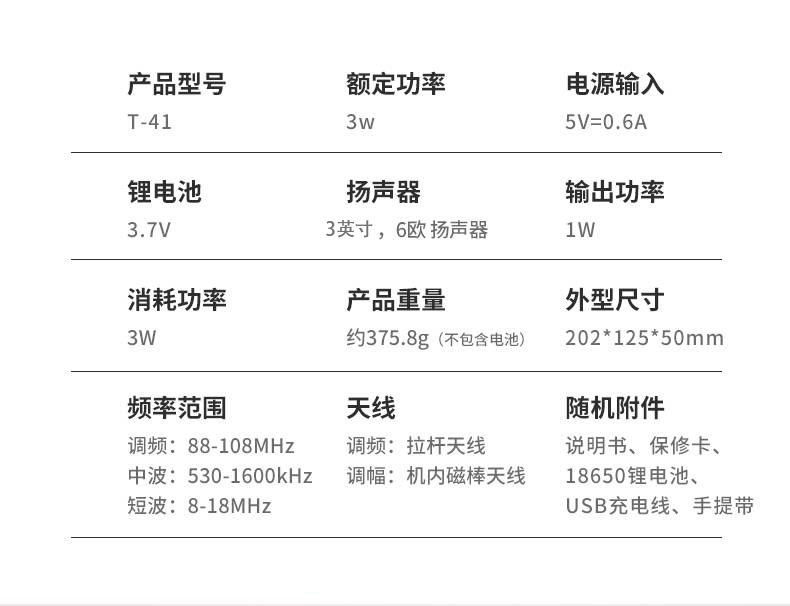 - 商品名称:熊猫(PANDA)T-41怀旧复古收音机锂电池三波段木纹老年人半导体