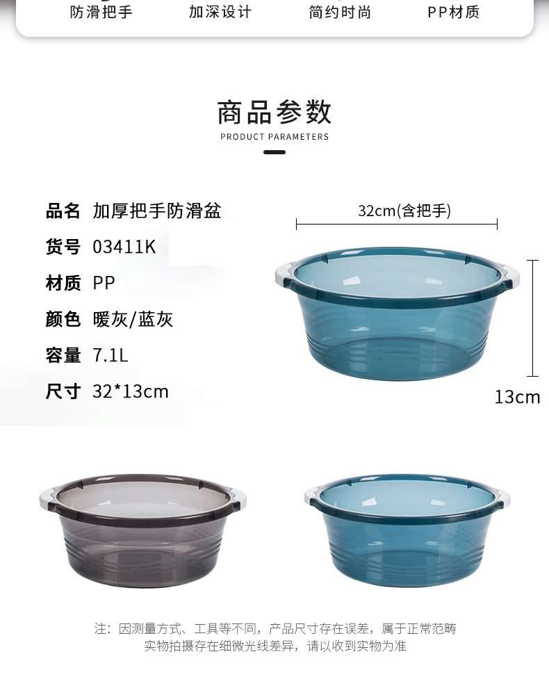 - 商品名称:茶花 塑料盆洗脸盆32CM把手防滑盆 03411K
